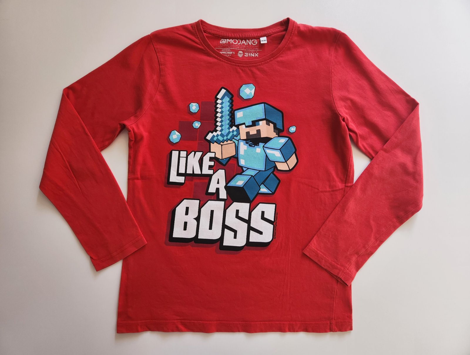 Červené triko s dlouhým rukávem zn. C&A - MINECRAFT, pružný krční lem, obrázkový potisk.