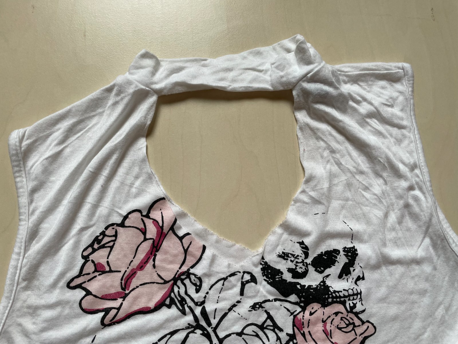 hol. nabízím k prodjei toto tílko, vel S, Colloseum. je vystřižené (má to takovou ozubenou strukturu - viz fota) na hrudník i do zad. Materiál 95% viscoza a 5% elasten. Nošené, bez avd, krásné