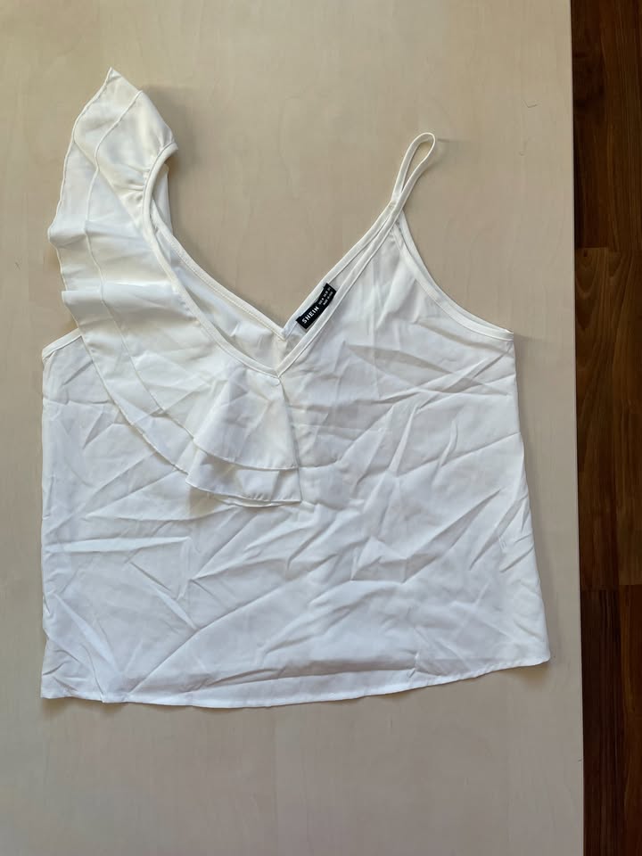 Bílý top s volánem, vel M, Shein