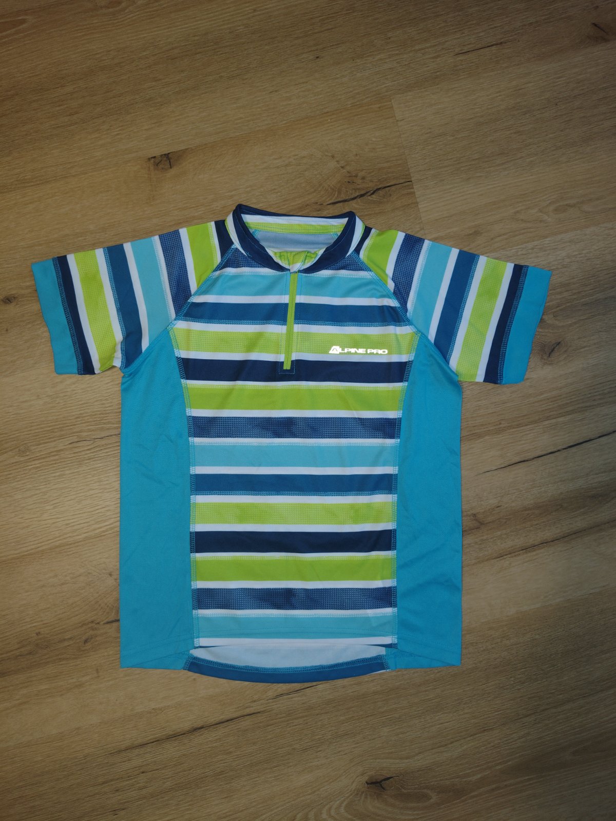 Dětské cyklistické funkční triko AlpinePro 164/170, u krku na krátký zip, zadní prodloužený díl, reflexní prvky, rychleschnoucí materiál, polopřiléhavý střih, prodloužená spodní část vzadu, kapsy 2, materiál: 100% polyester. Námi kupované nové, použité pouze loňskou sezónu. Skvělý stav.