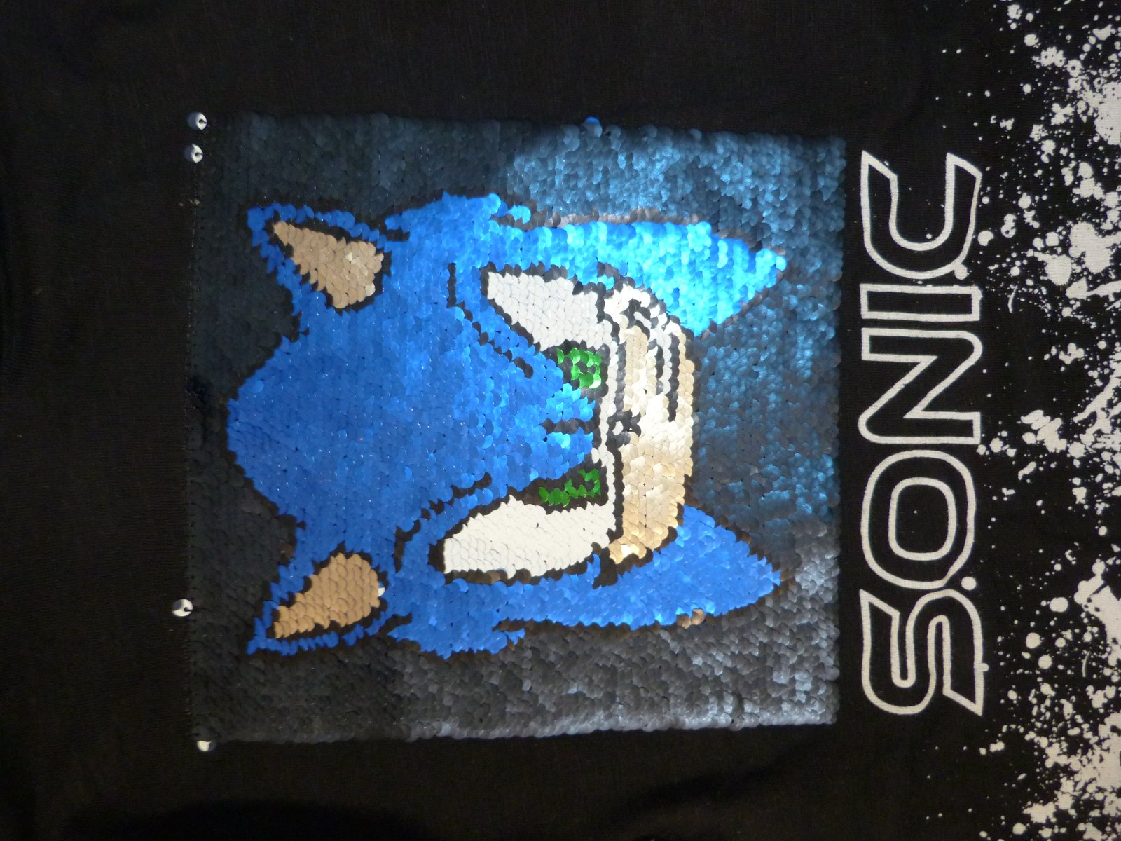 Nxt bavlněné tričko Sonic, měnící flitry vel. 116, super stav, bavlna, d 50cm, š 36cm, 250828