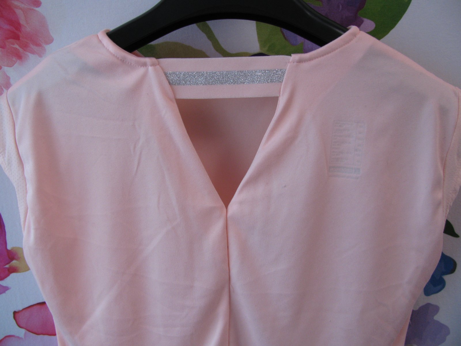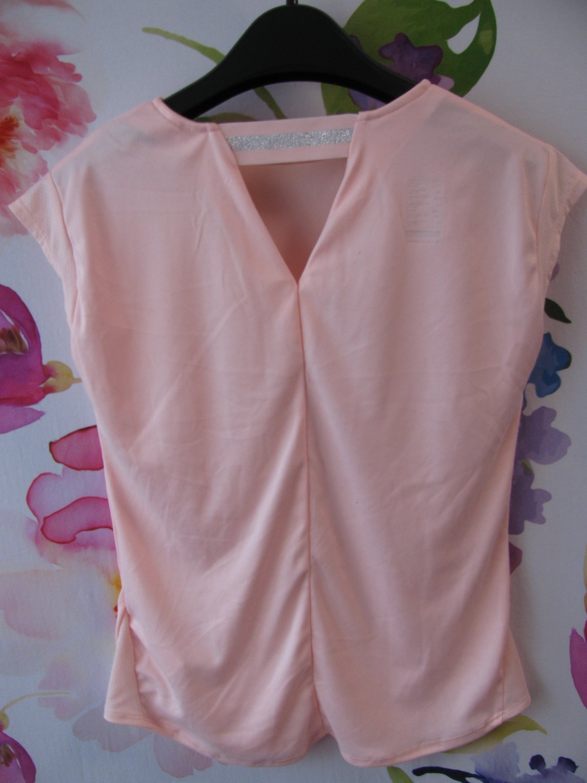 Luxusní elastické růžové sportovní tričko, zajímavě řešená záda, 82% polyester,18% elastan, dále 100% polyester.
