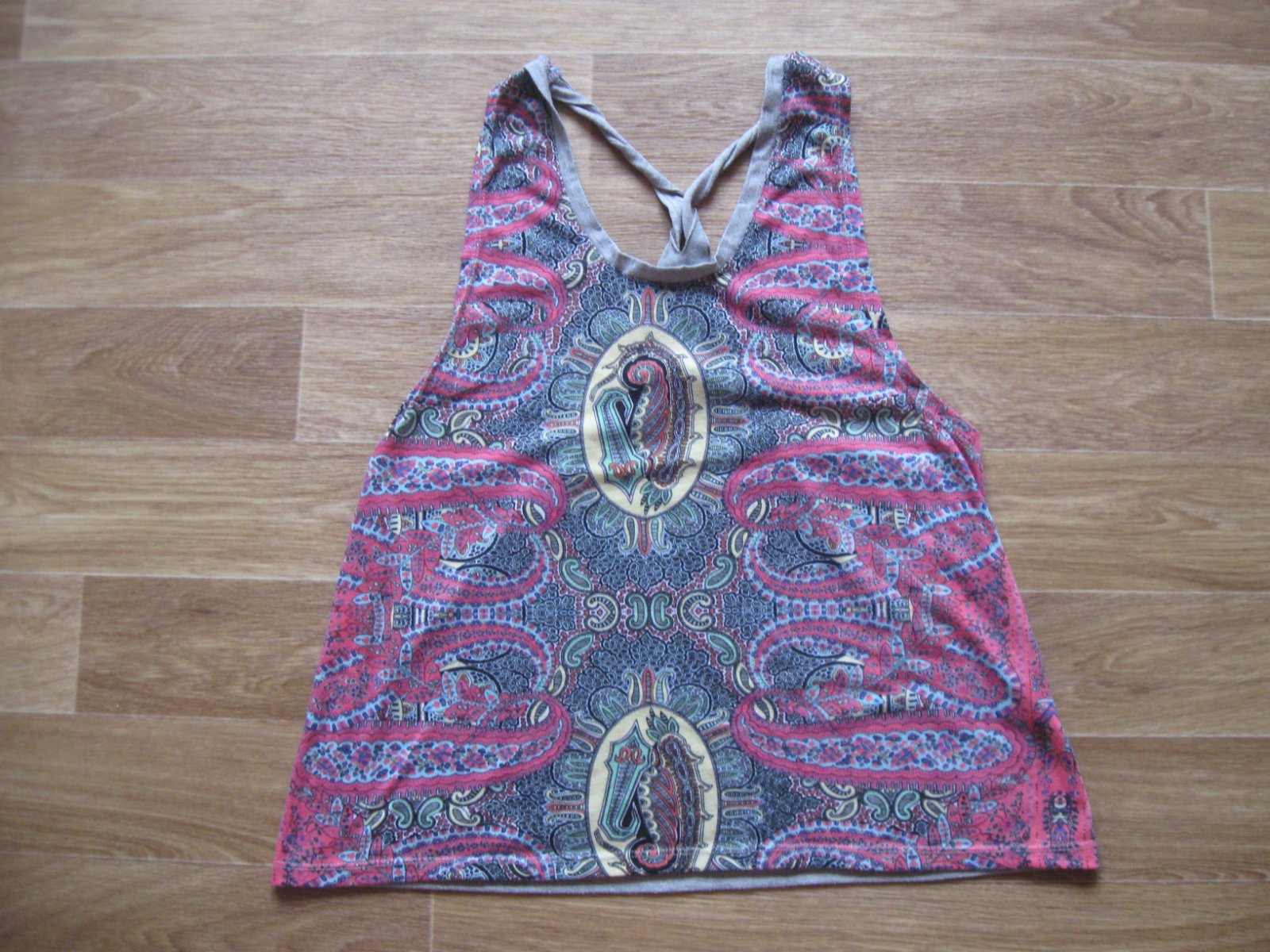 Prodám krásné nové triko - tílko s širokými ramínky.Vhodné přes plavky. Objednala jsem si nevhodnou velikost. Velikost 14 - (což je cca vel.40,pod průramky 47cm a délka 52cm a pak ještě cípy as...