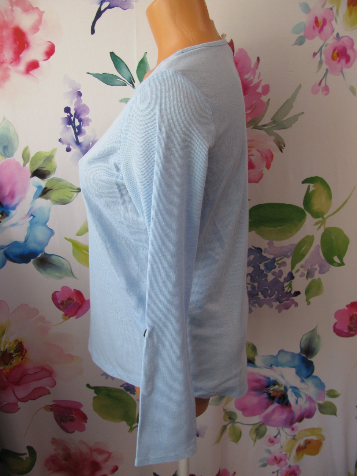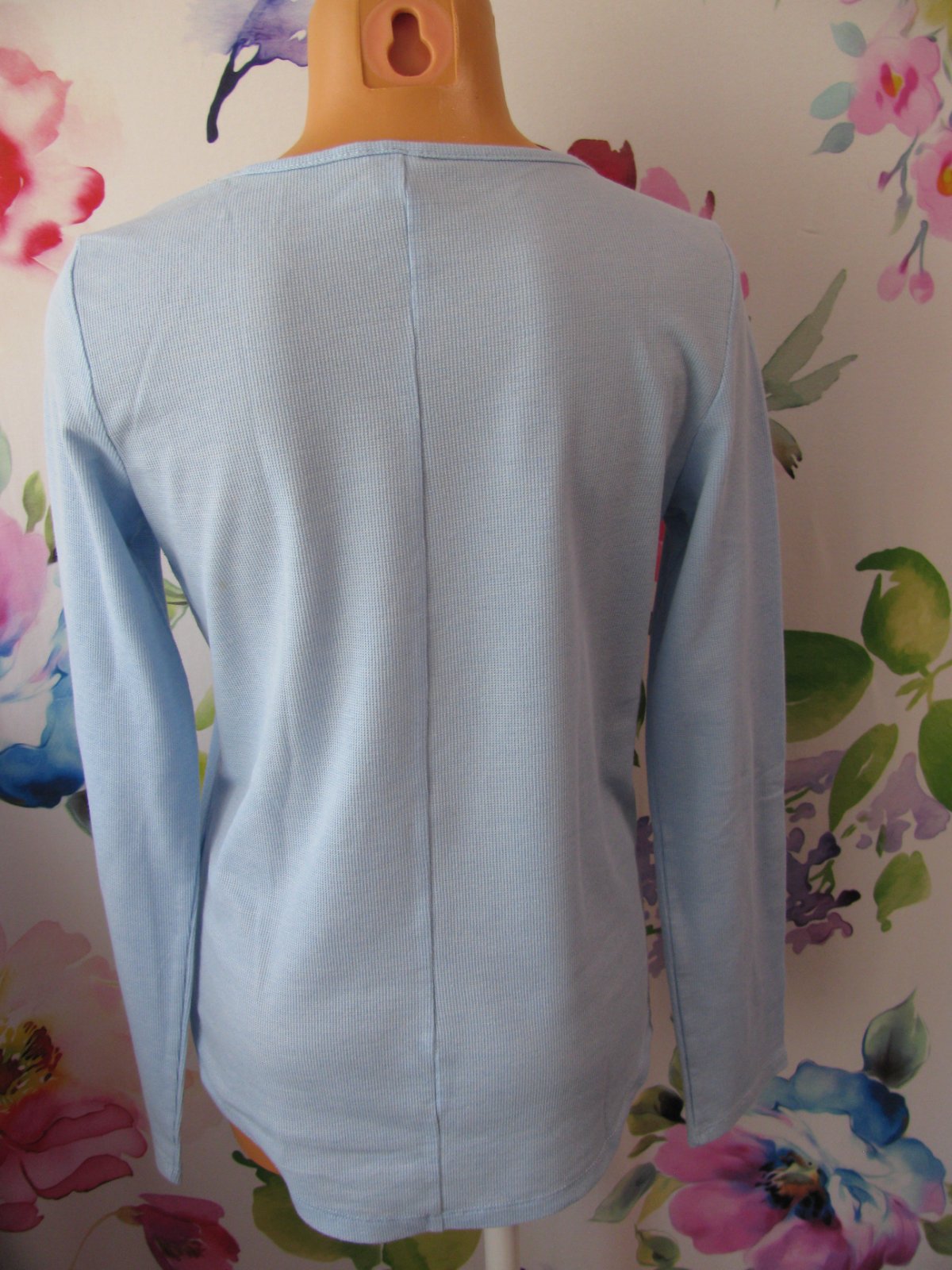 Krásné modré bavlněné tričko s rolo rukávem, záda lehce prodloužená. 50% bavlna, 50% polyester. Top stav bez vady.