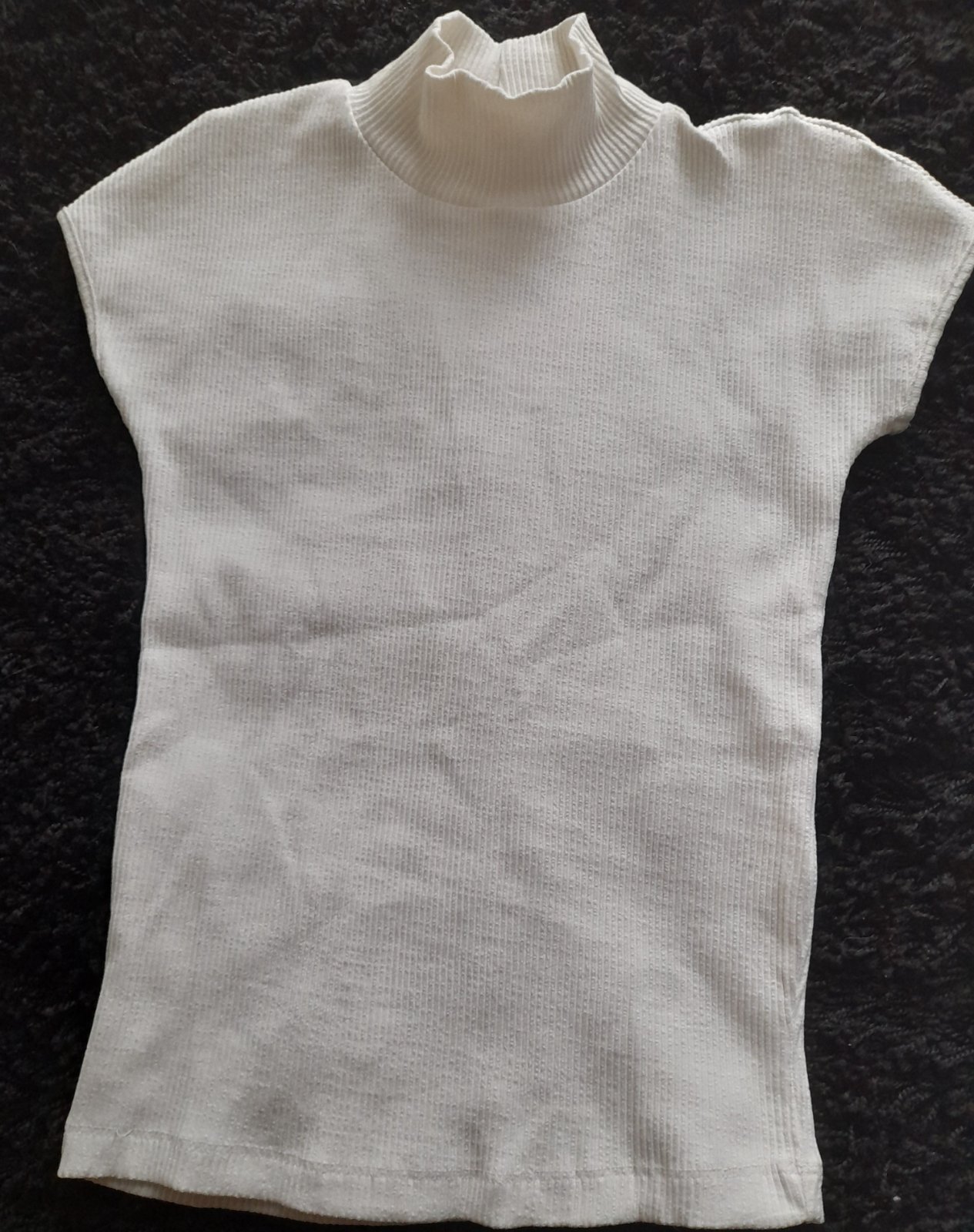 Predám blúzka-tričko v.S, šírka 49 cm, dĺžka 66 cm, rukáv 16 cm, predný diel pevný blúzkový a pružný čierny tričkový chrbát, 100% stav Cena 8,80€ + poštovné. Nie Výmena !!!! Ď. (po...