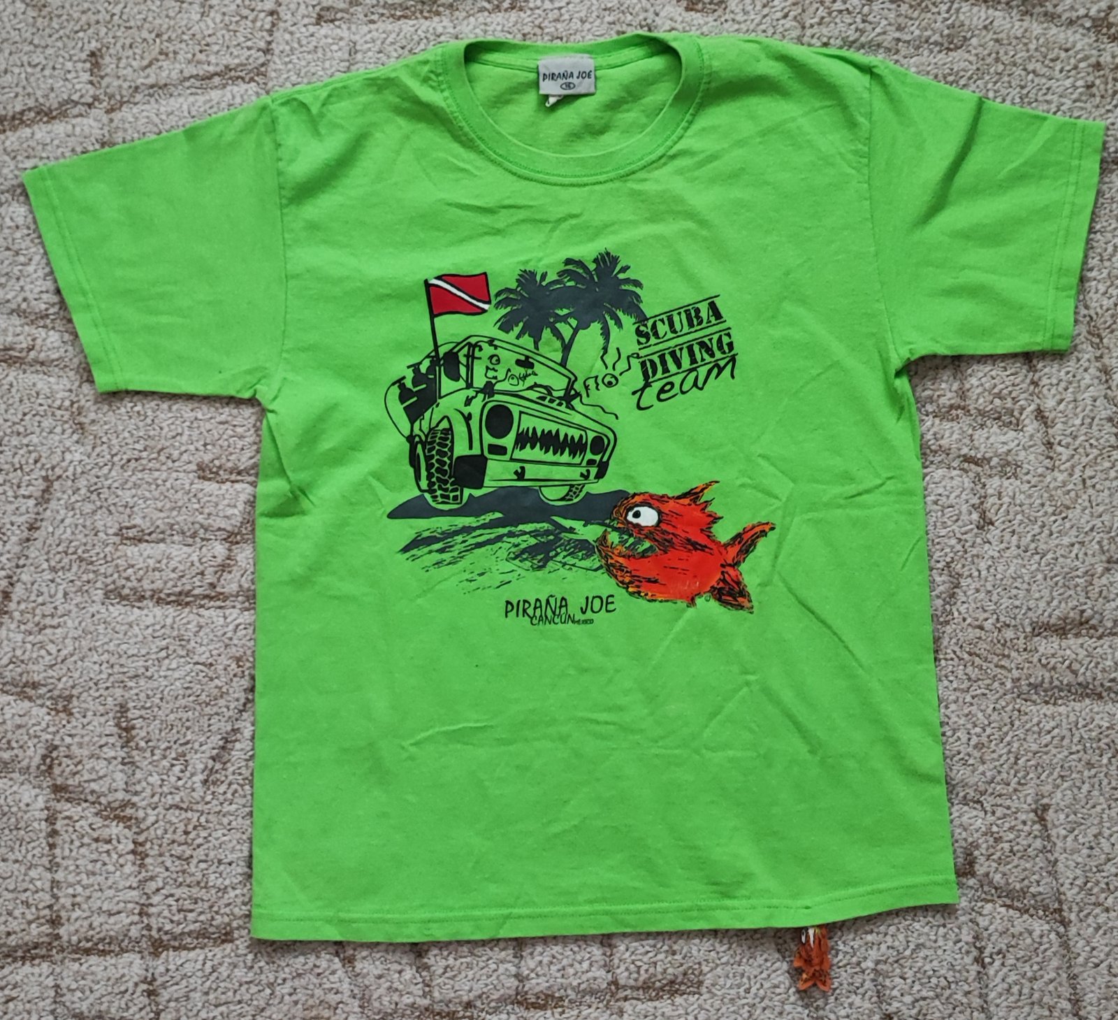 Tričko je v bezvadném stavu. Rozměry: délka od ramene 53 cm, šíře přes prsa 2x43 cm.