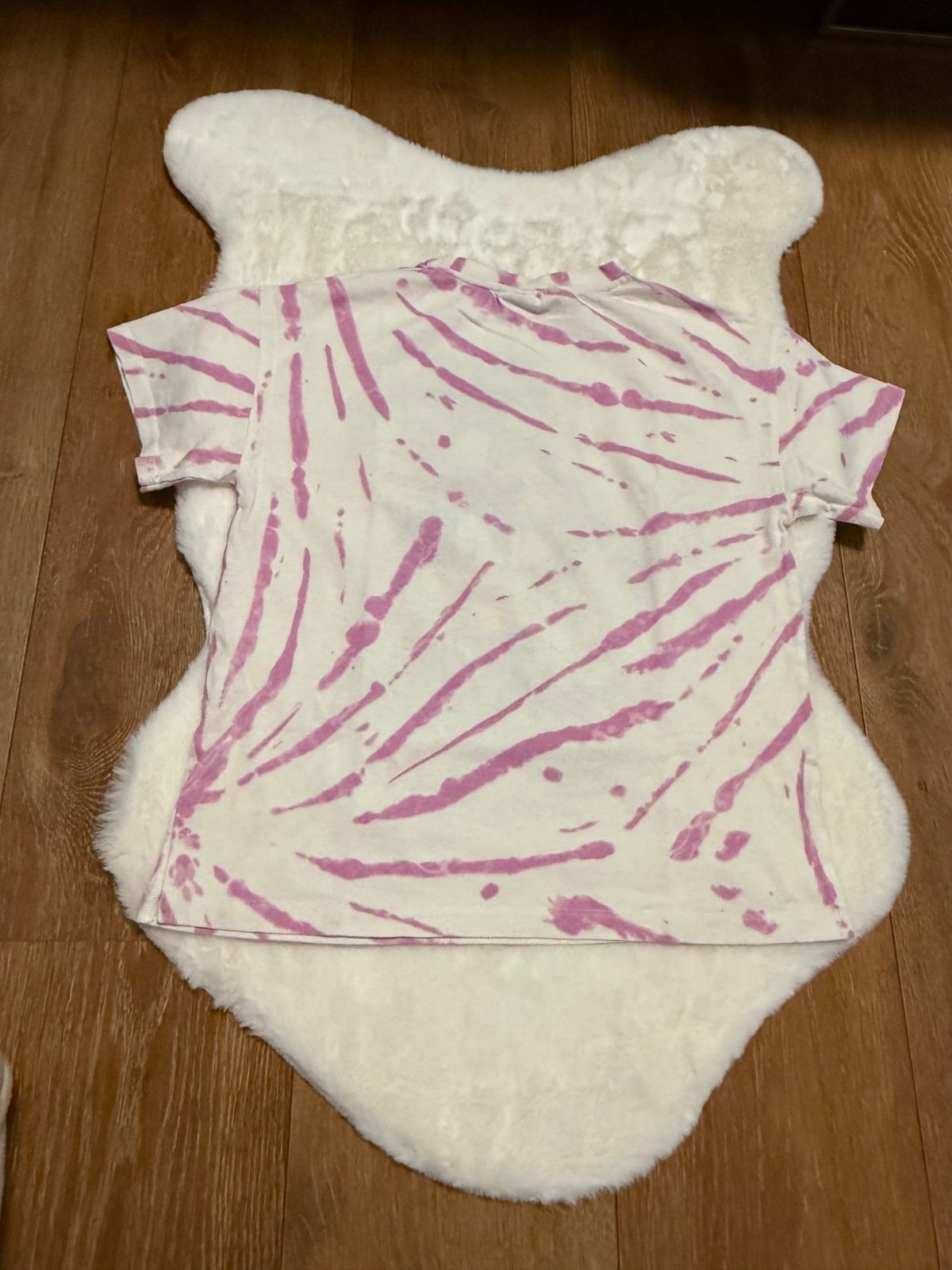 Párkrát na sobě. Délka 56 cm, šířka 51 cm; řasené krátké rukávy. Materiál: lehký úplet. Barva mezi růžovou a červenou. Doprava: od 65 Kč.
