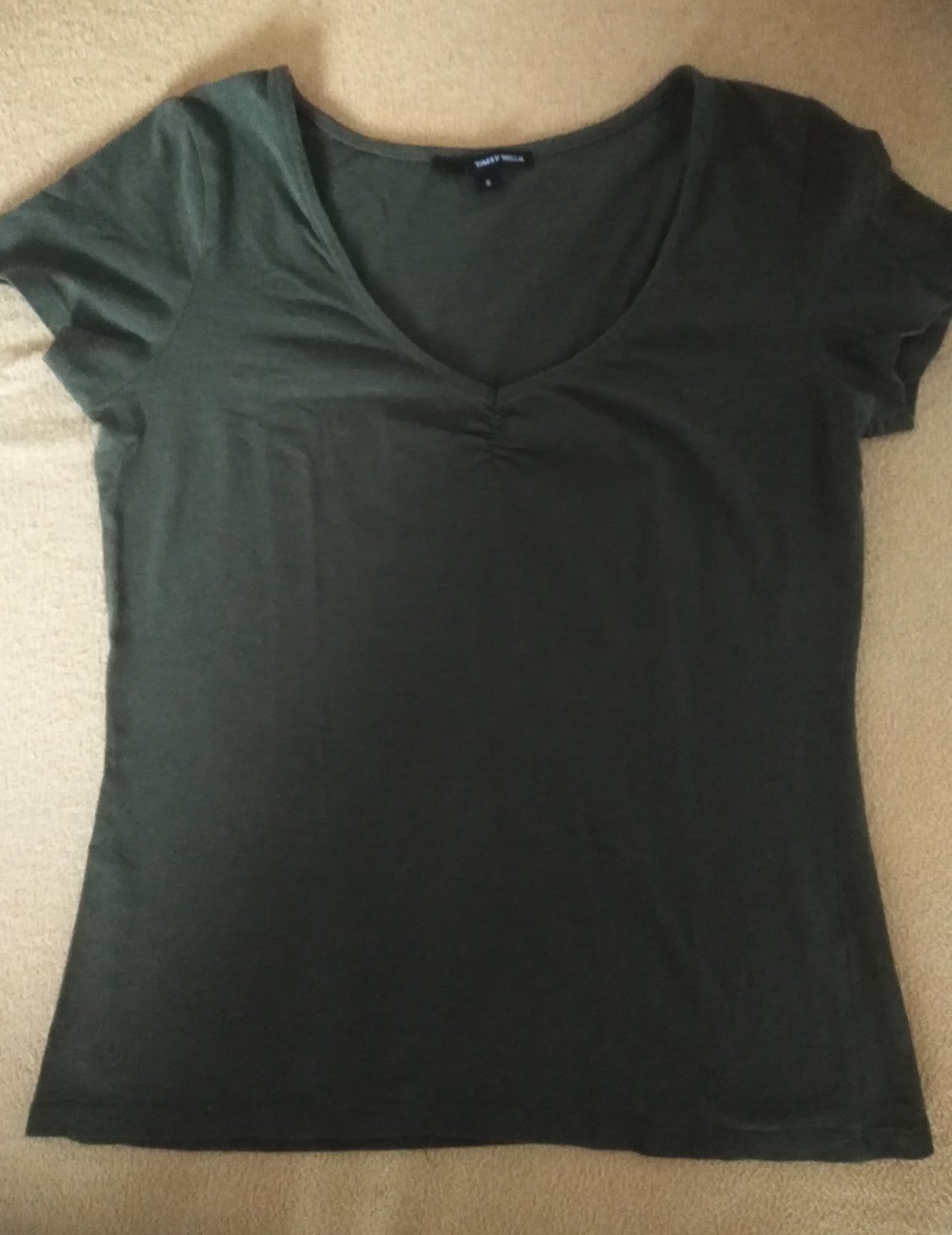 Prodám dívčí /dámské tričko S (tmavá khaki až hnědá) moc hezké k sukni i ke kalhotam. Khaki volné plátěné kalhoty na fotce jsou také k prodeji - velikost 36/S