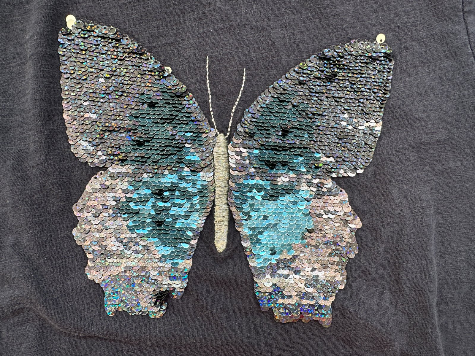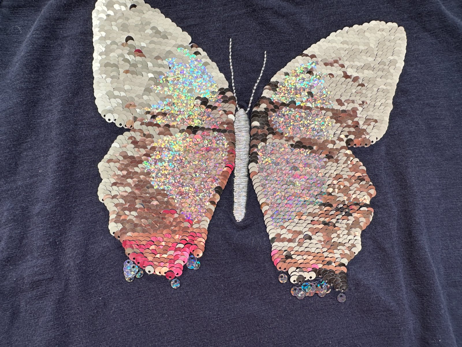 Dívčí tričko motýl, měnící se flitry, H&M, vel.134