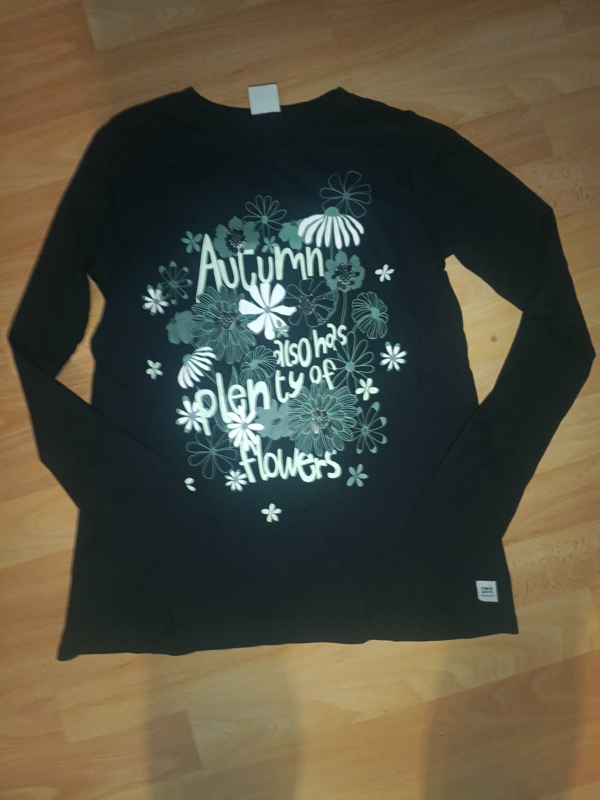 Prodám černé tričko se stříbrným nápisem, minimálně nošené, velikost 164, TOP stav.