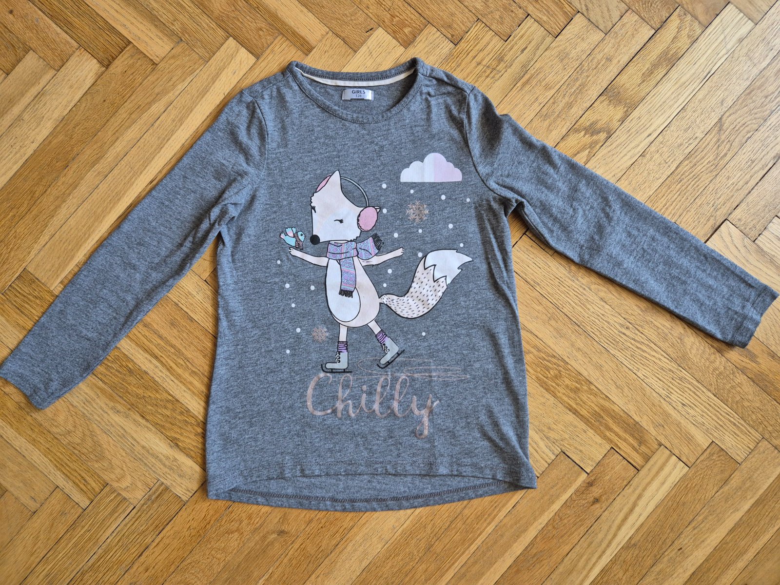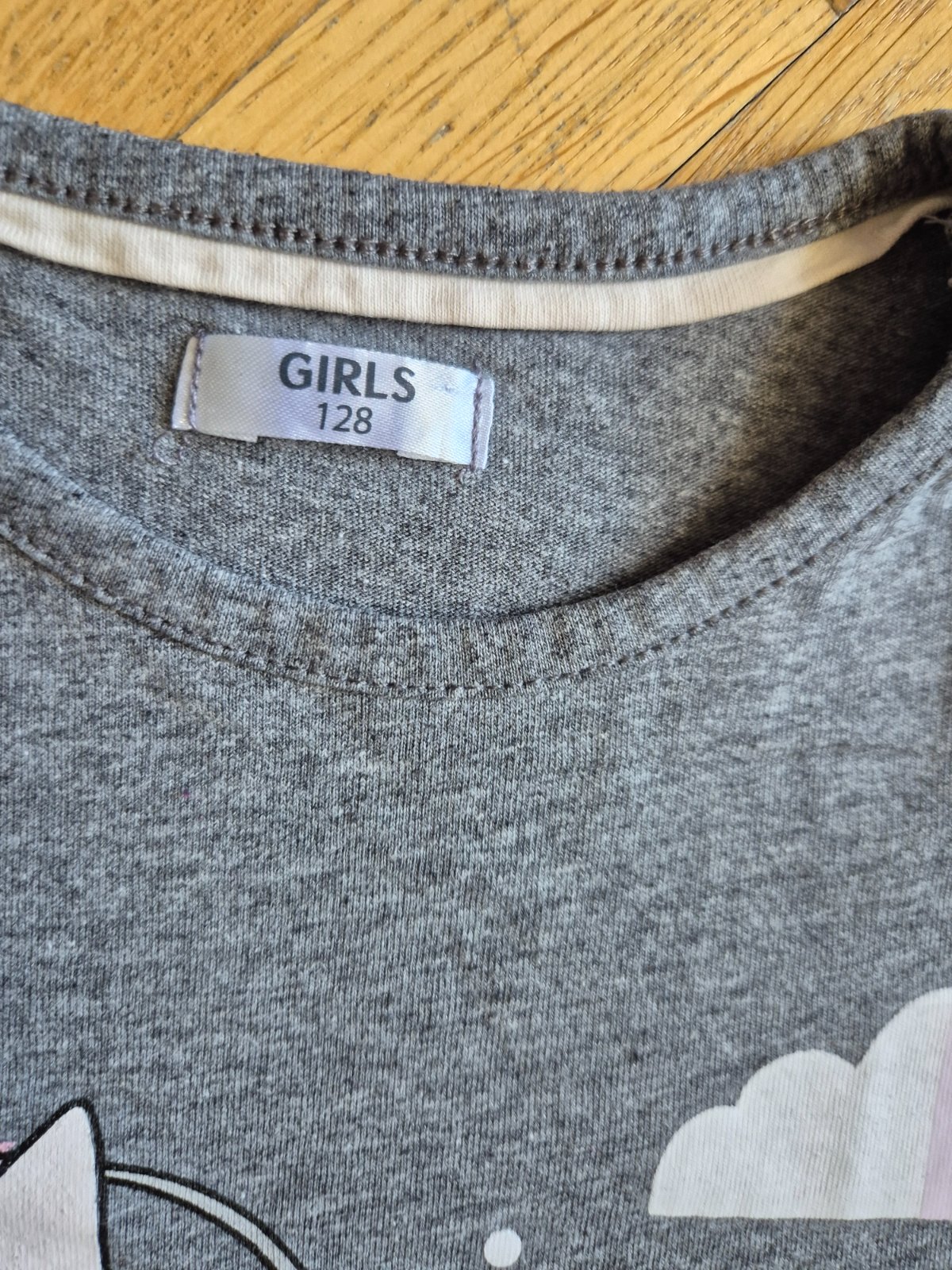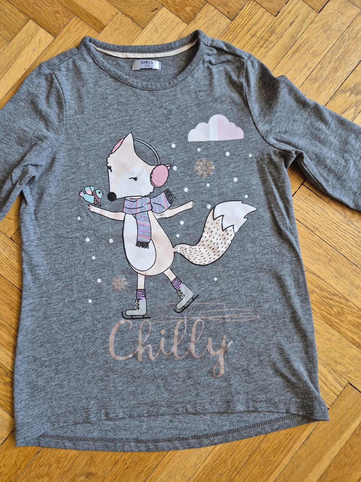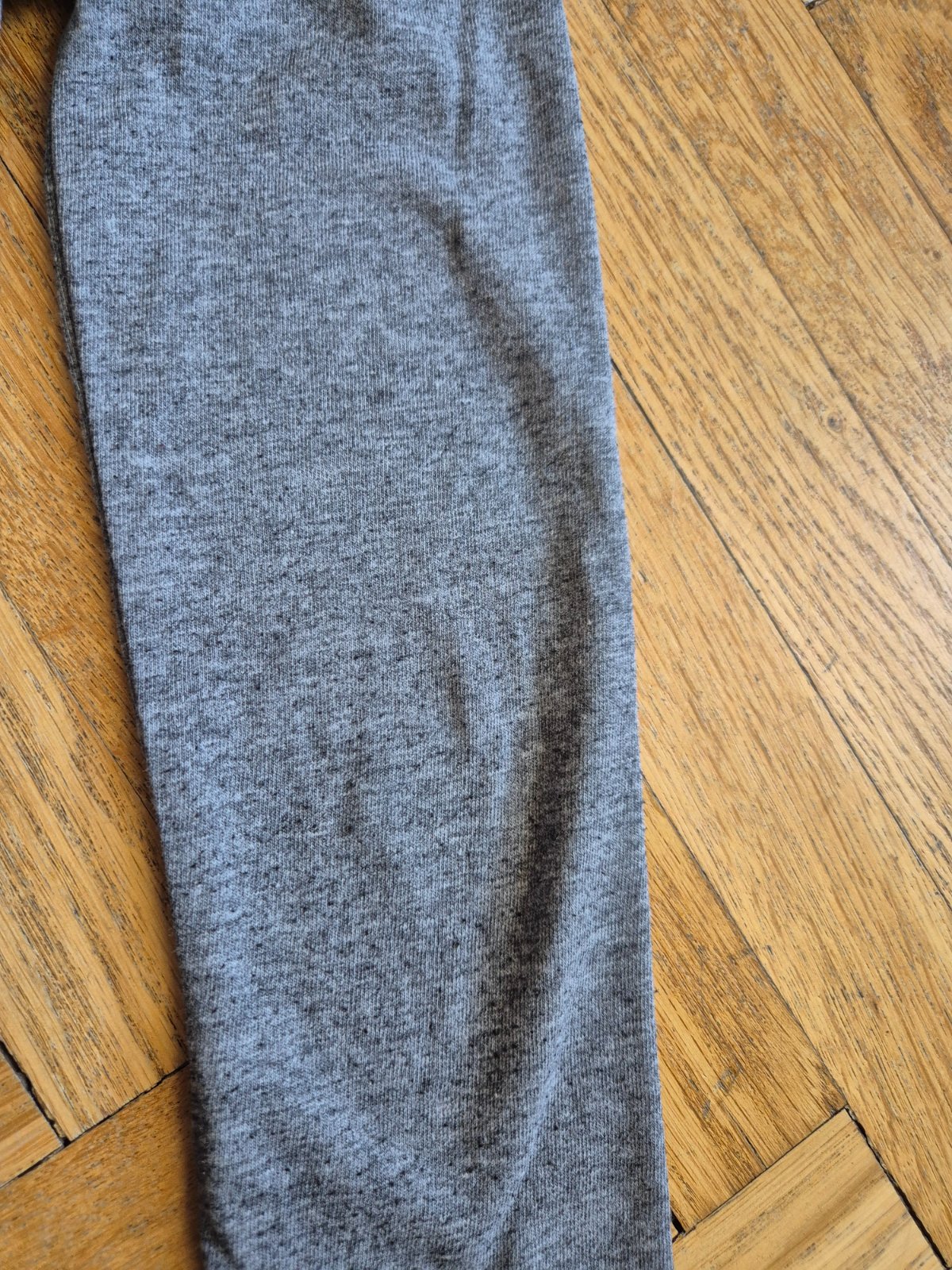 Má delší střih, bavlna a polyester, na rukávech začínající žmolky, v obrázku jsou dvě čáry pravděpodobně od fixy