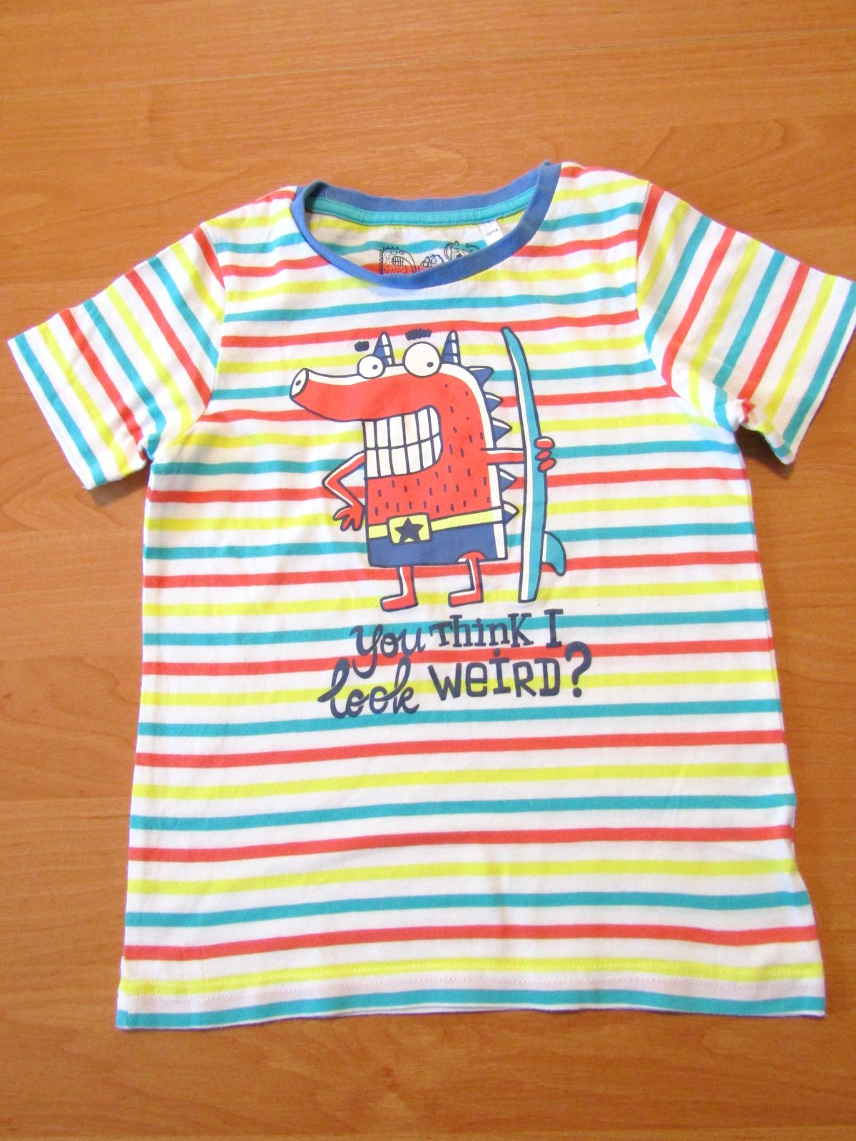 Pruhované tričko z Lidlu, super stav. Ve vnitřní části sytější barva, která jakoby prosvítá napovrch, vypadá to, jako když je tričko obráceně, ale není.