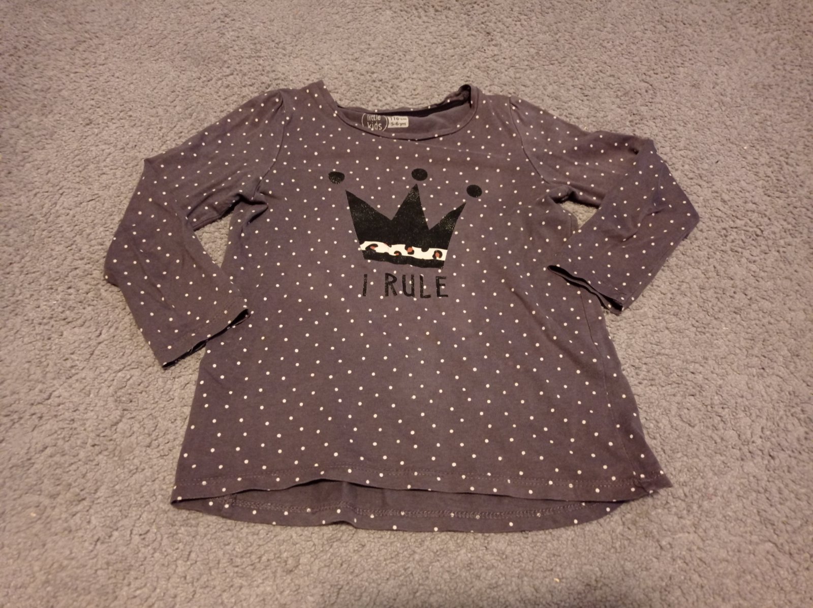 Krásné dívčí triko s dlouhým rukávem a malým stojáčkem .... rukávy dvojí efekt ...... na předním díle je aplikace ...... vyrobeno z 65% bavlna, 30% polyester a 5% elastan ...... velikost psaná 110/...