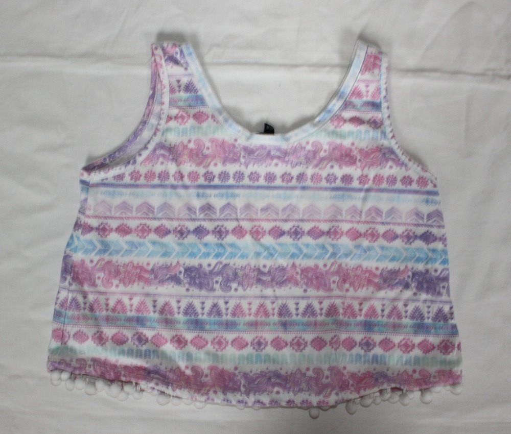 OB34. Krátké,široké tílko s bambulkami 10-11let