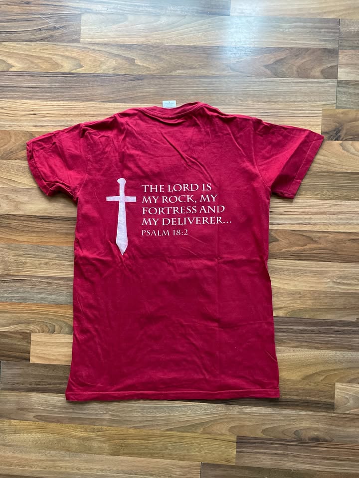 991. nabízím k prodjei toto vínově červené triko s potiskem s náboženskou tematikou, vel S, Gildan. Přední nápis maličko popraskán, jinak bez vad, krsáné