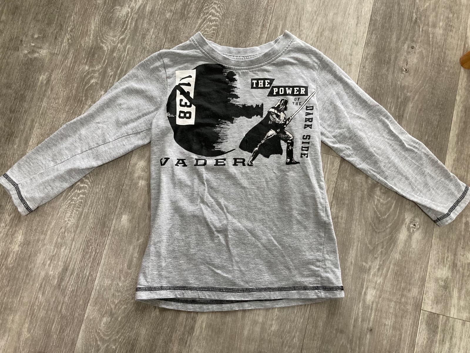 Světle šedé melírované triko po mých syncích. V předu kapsička. Bez vady. Uvedená velikost 110/116