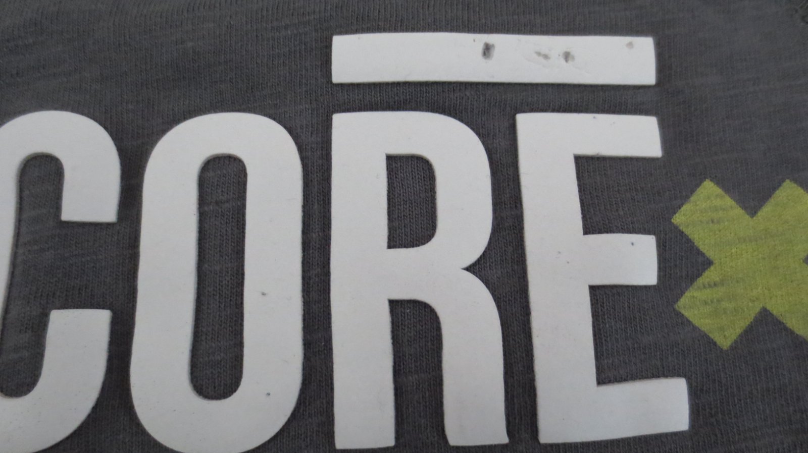 Tričko stále pěkné, jen kousek obrázku poškrábaný (nad nápisem CORE, viz foto), zajímavé švy.