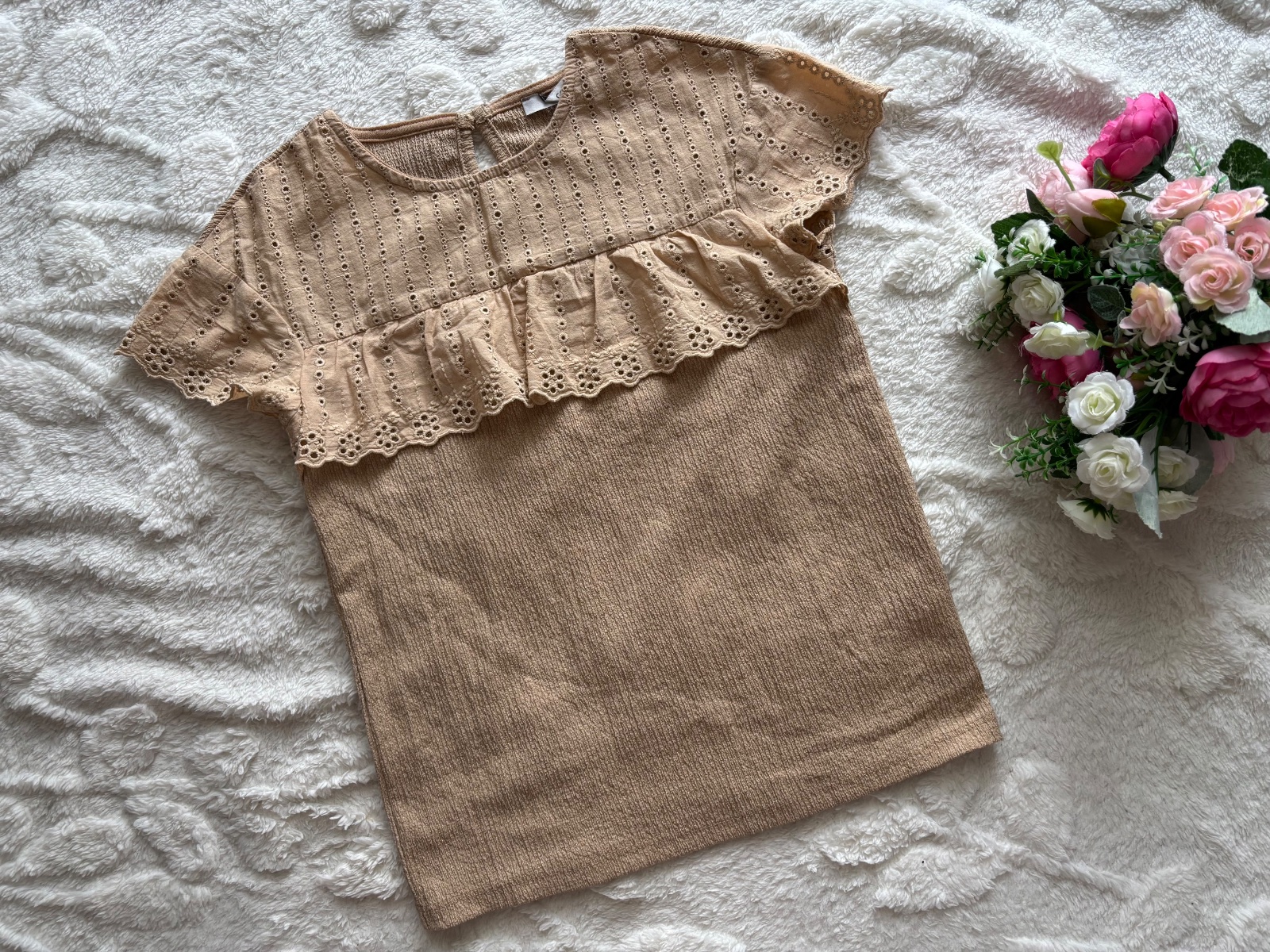 TOP STAV: téměř nenošené, bez vady. Krásná s volánem , zdobené madeirou.
