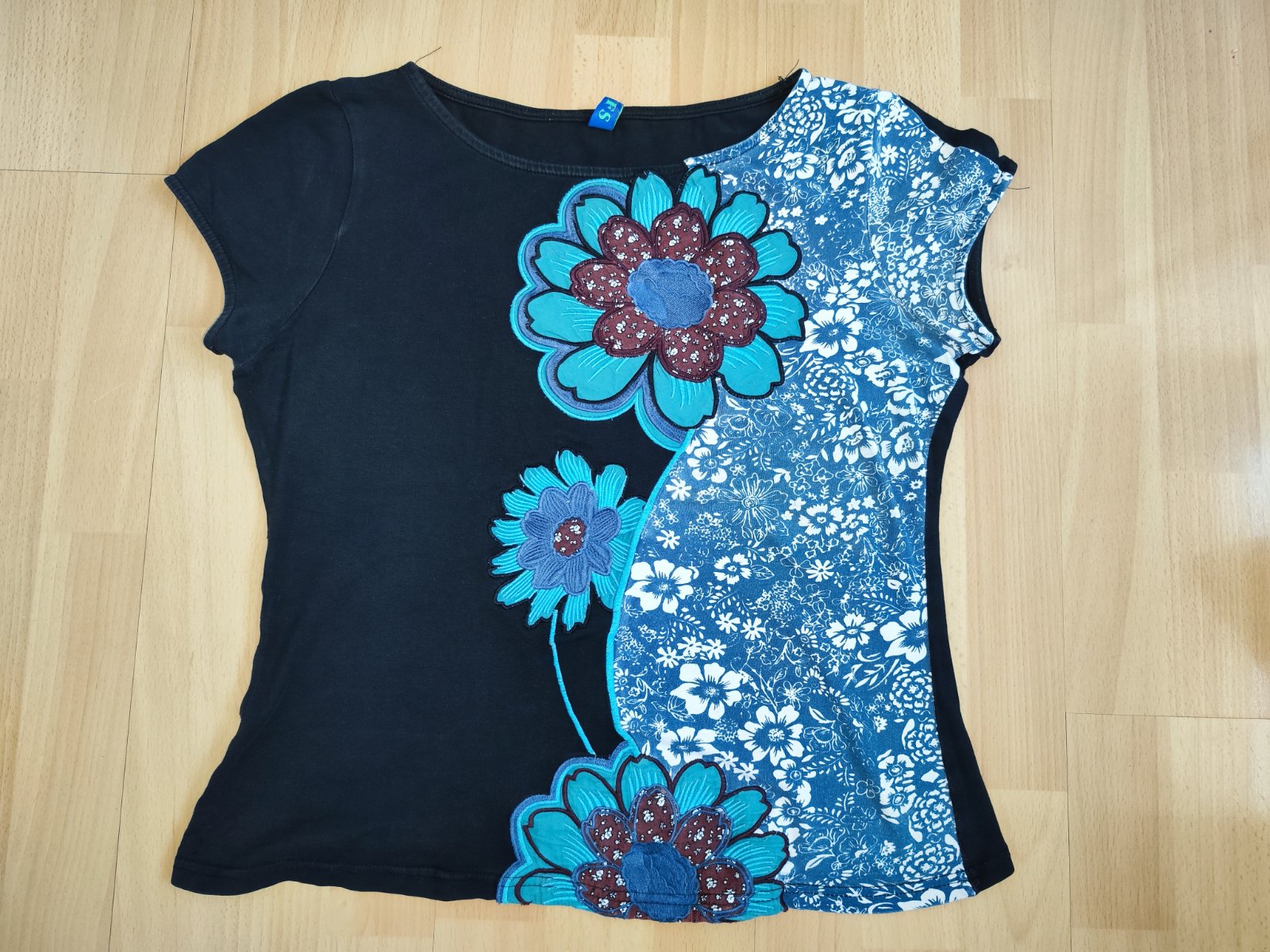 Prodám originální triko YYFS, velikost cca M , rozměry – délka od ramen 53 cm; šířka v podpaží 48 cm. Přední strana trika je velmi zajímavá – na jedné straně je modrobílý květinový vzor, druhá strana zůstává v černé. Mezi nimi tři výrazné květiny. Cena 120 Kč, v Brně možné osobní předání.