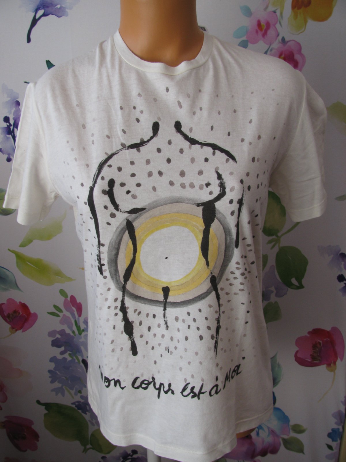 Luxusní bavlněné tričko s potiskem, 86% bavlna, 14% len. Pc velmi vysoká, musím prodat hodně pod cenou, je nám malé.