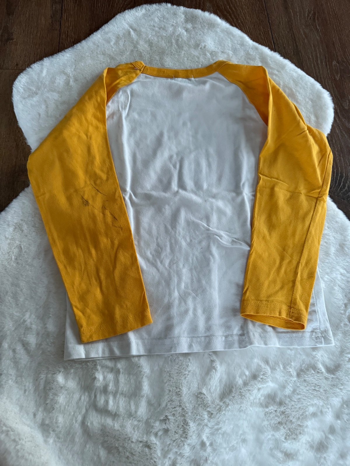 Málo nošené, příjemné, bavlněné triko s dlouhým rukávem, vpředu bezchybný potisk s logem, nášivka vzadu dole, zdobné, drbané zakončení nad lemem rukávů a dole, d. 56,5cm, š. 42, rukáv od průramku 3...