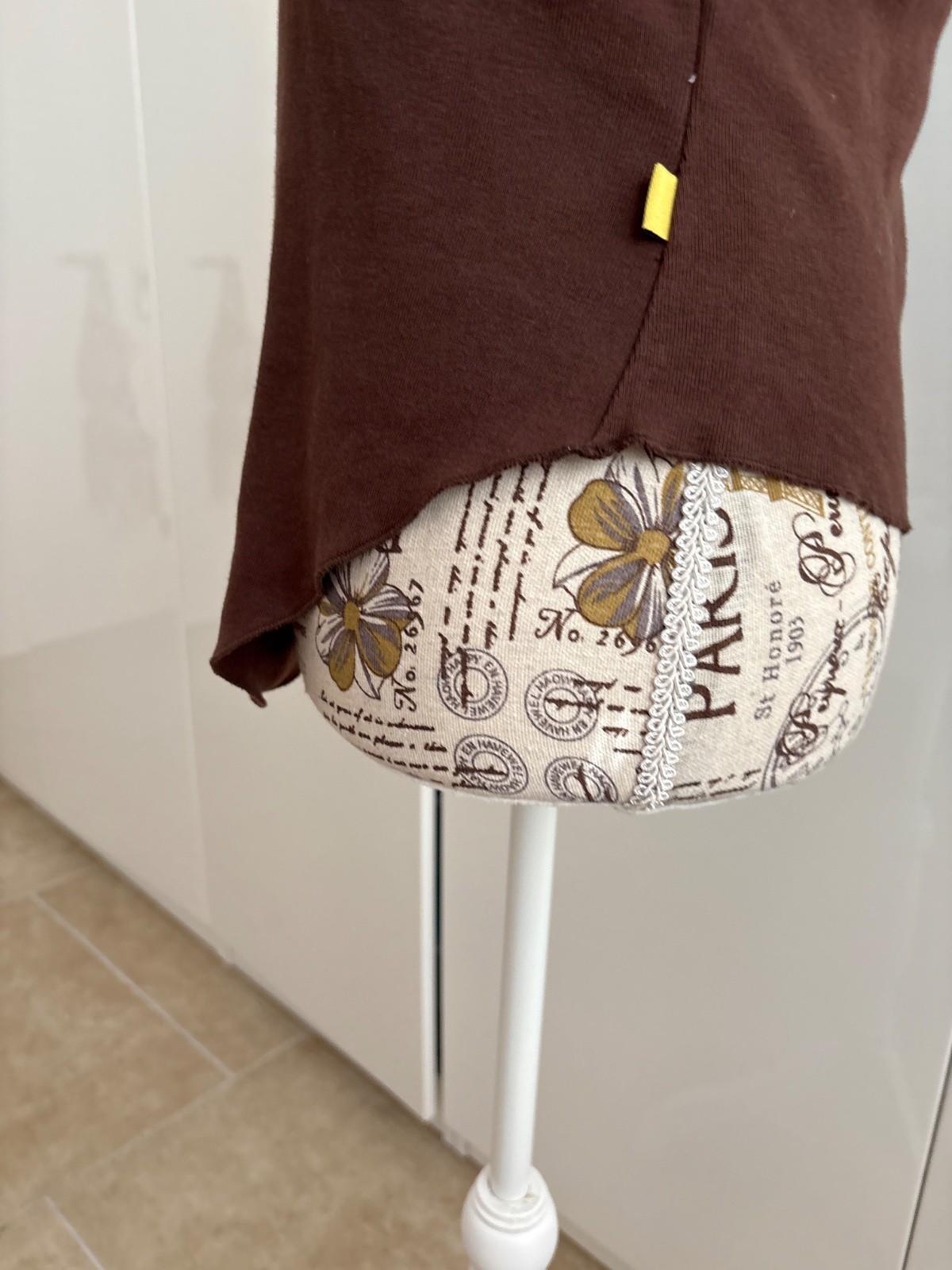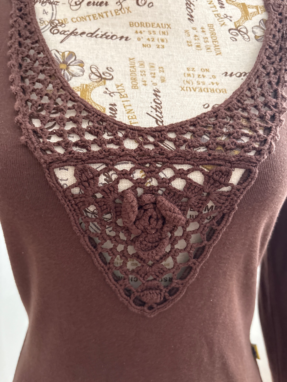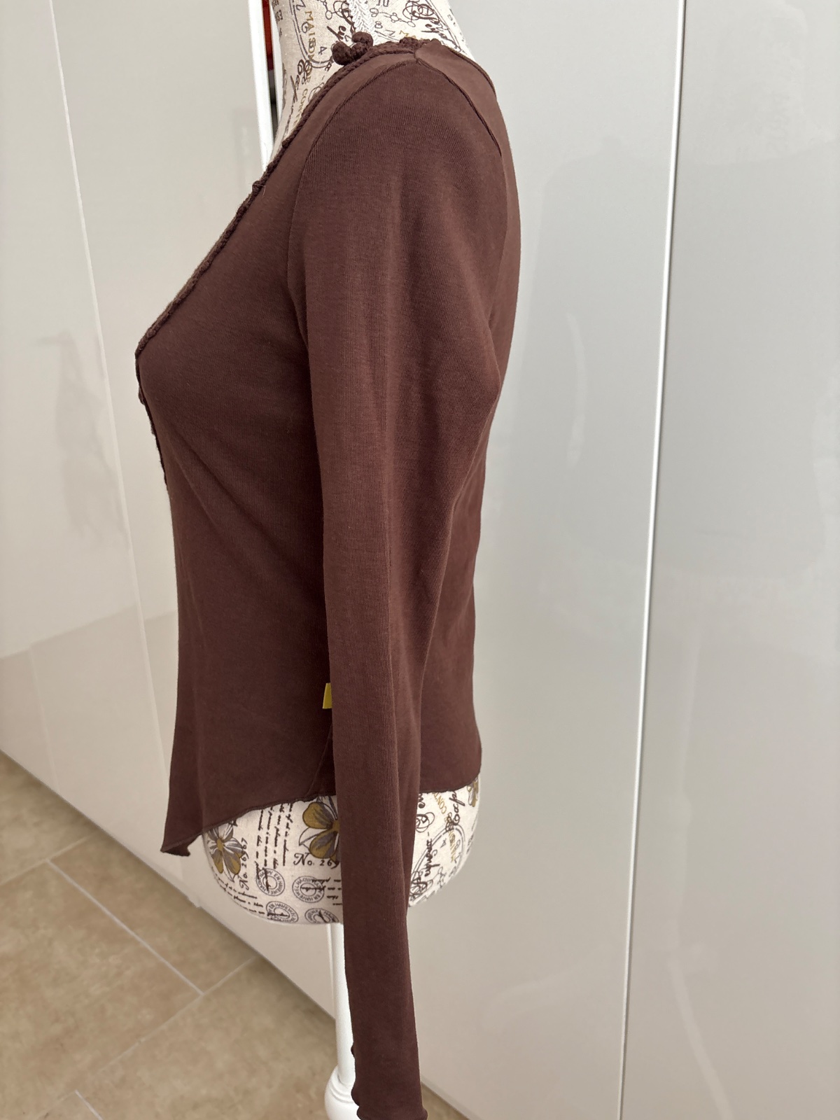 Tričko s dlouhým rukávem buvolí hnědé barvy s výšivkou, velikost 32/34