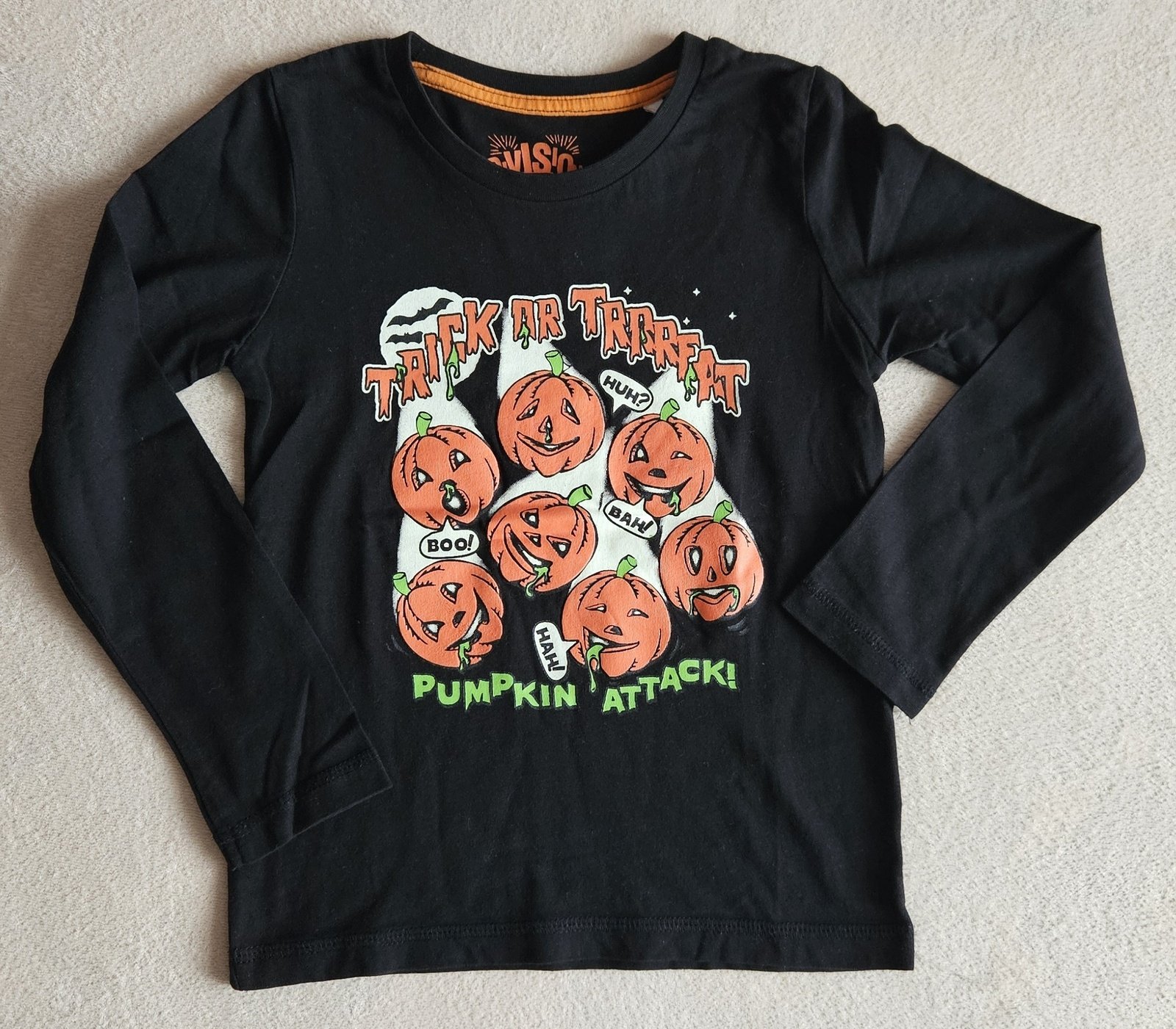 Černé, Halloween, ve tmě svítící - vel.110, délka 44cm, šíře přes hruď 31cm, stav velice pěkný