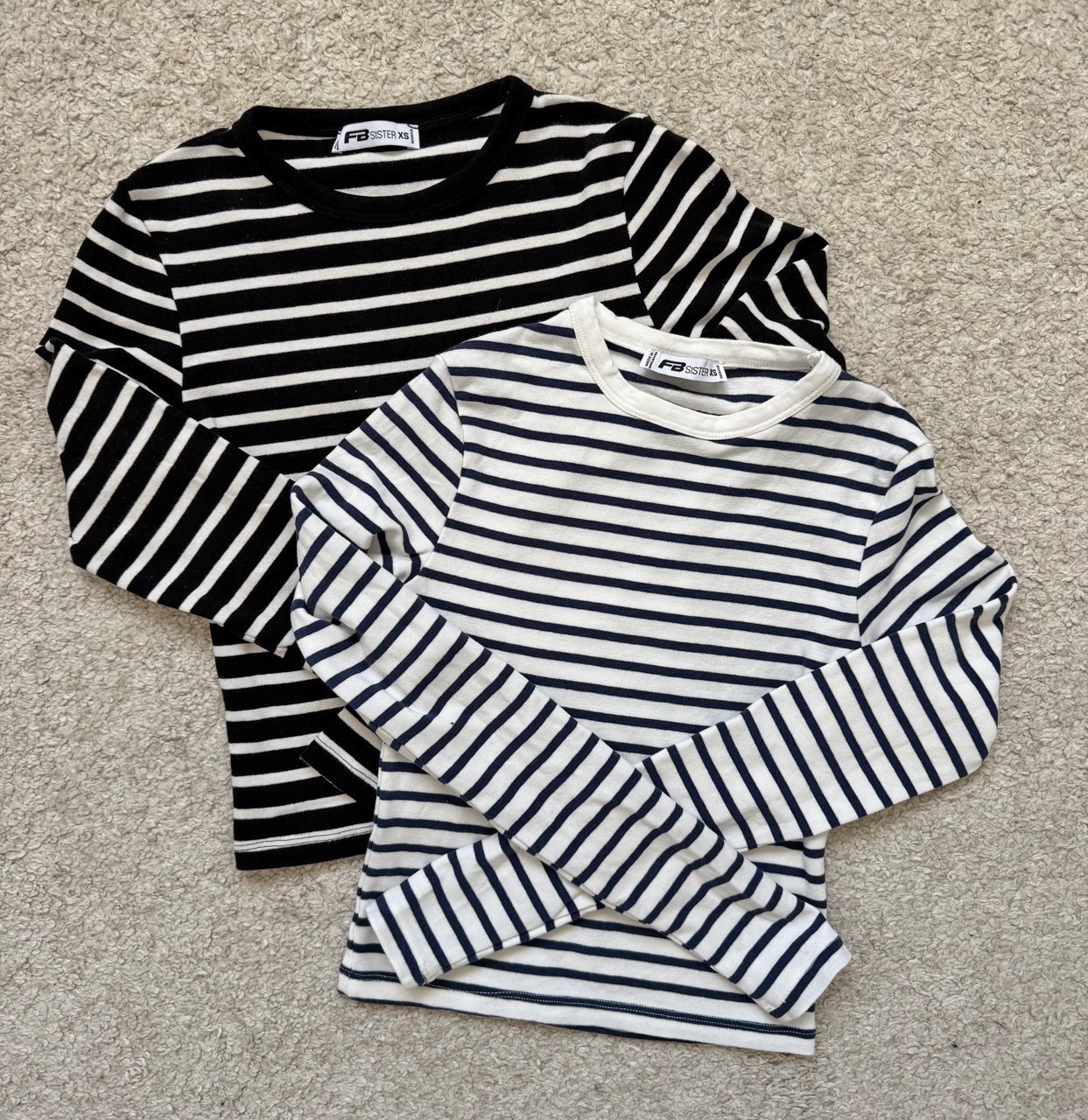 Černo-bílé pruhované triko s cípatým zadním dílem zn. M&Co, dlouhý rukáv. Délka rukávu od krku: 57 cm Celková délka: 43 cm přední díl / 60 cm zadní díl Šíře pod rukávy: 42 cm Materiál: 100% bavlna...