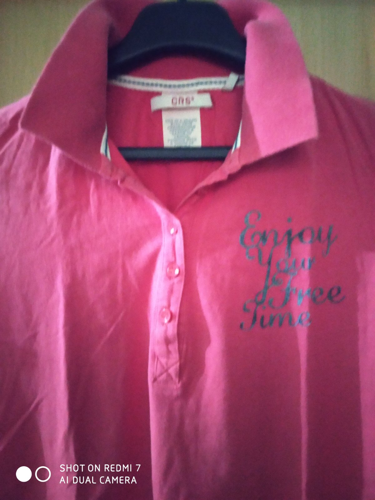 Krásné polo triko, korálové barvy, 100% stav, bohužel již malé. Míry: průramky 47cm, délka 64cm. Barva korálová(lososová)+šedá. zn. CRS