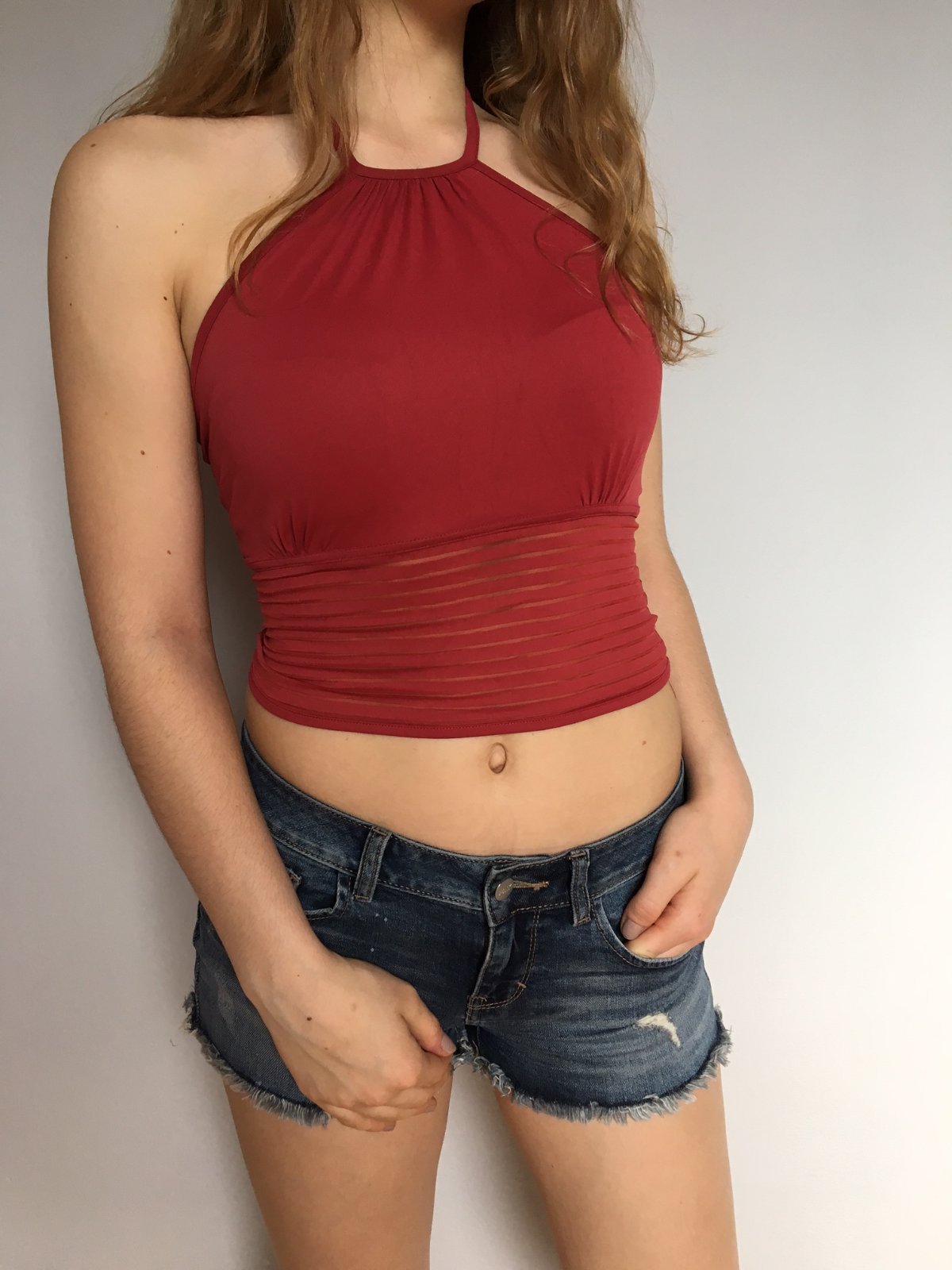 Vínový (290 Kč) - super stav; zavazování kolem krku - holá záda.