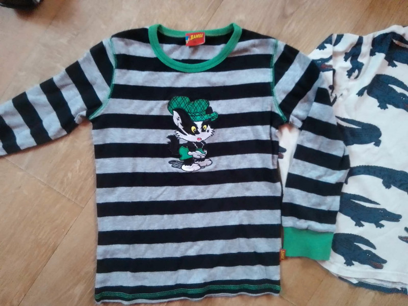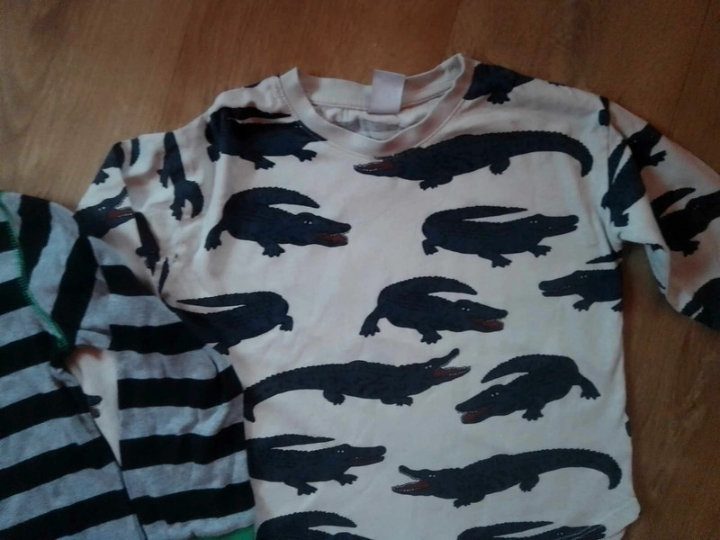 Nošené, dobrý stav, pruhované Bamse spíše teplejší, druhé krokodýlové je volnější vhodné jako pyžamkové, vel. 5-6 let, cena celkem.