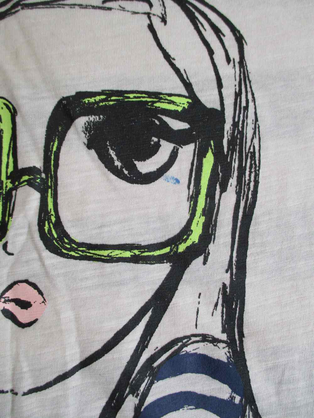 Nabízím dívčí tričko zn. George, vel. 158/164, známky praní, drobné skvrnky a dírka viz foto. Materiál 100% bavlna. Mezi podpažími 46 cm, délka 57 cm přední díl/ 64 cm zadní díl. Daruji k jakékoliv objednávce.
