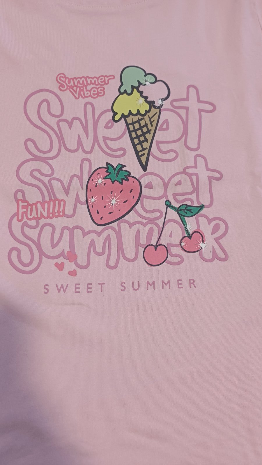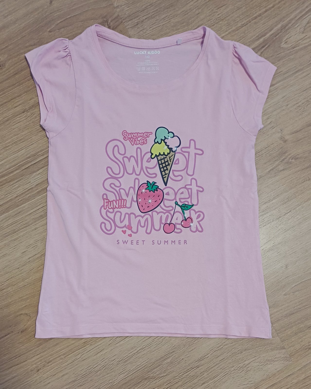 prodám světle růžové triko s obrázkem,c§a,vel.uvedena 146,ale je mneší,délka 46cm