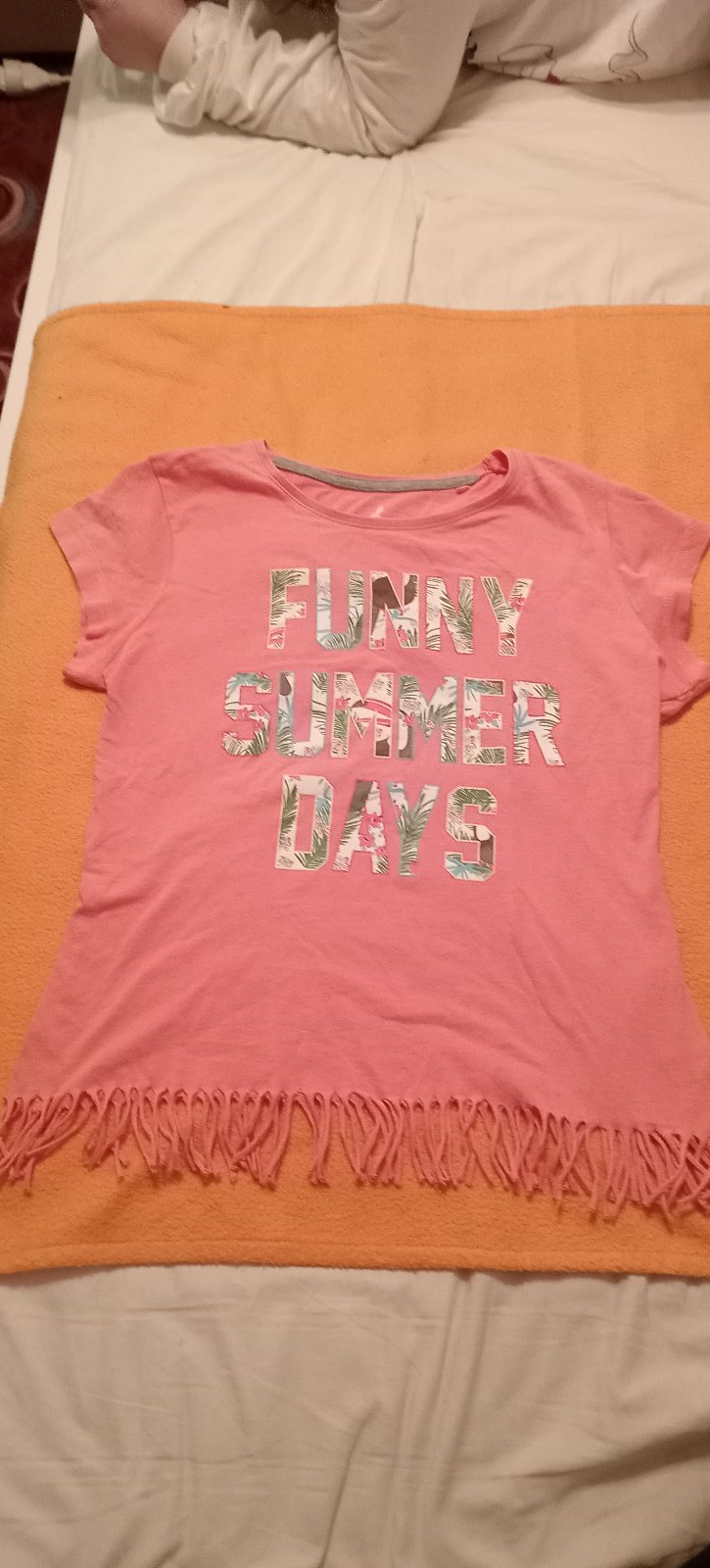 prodám lososové triko s třásněmi a potiskem,zn.pepperst,vel.158/164,délka 47cm