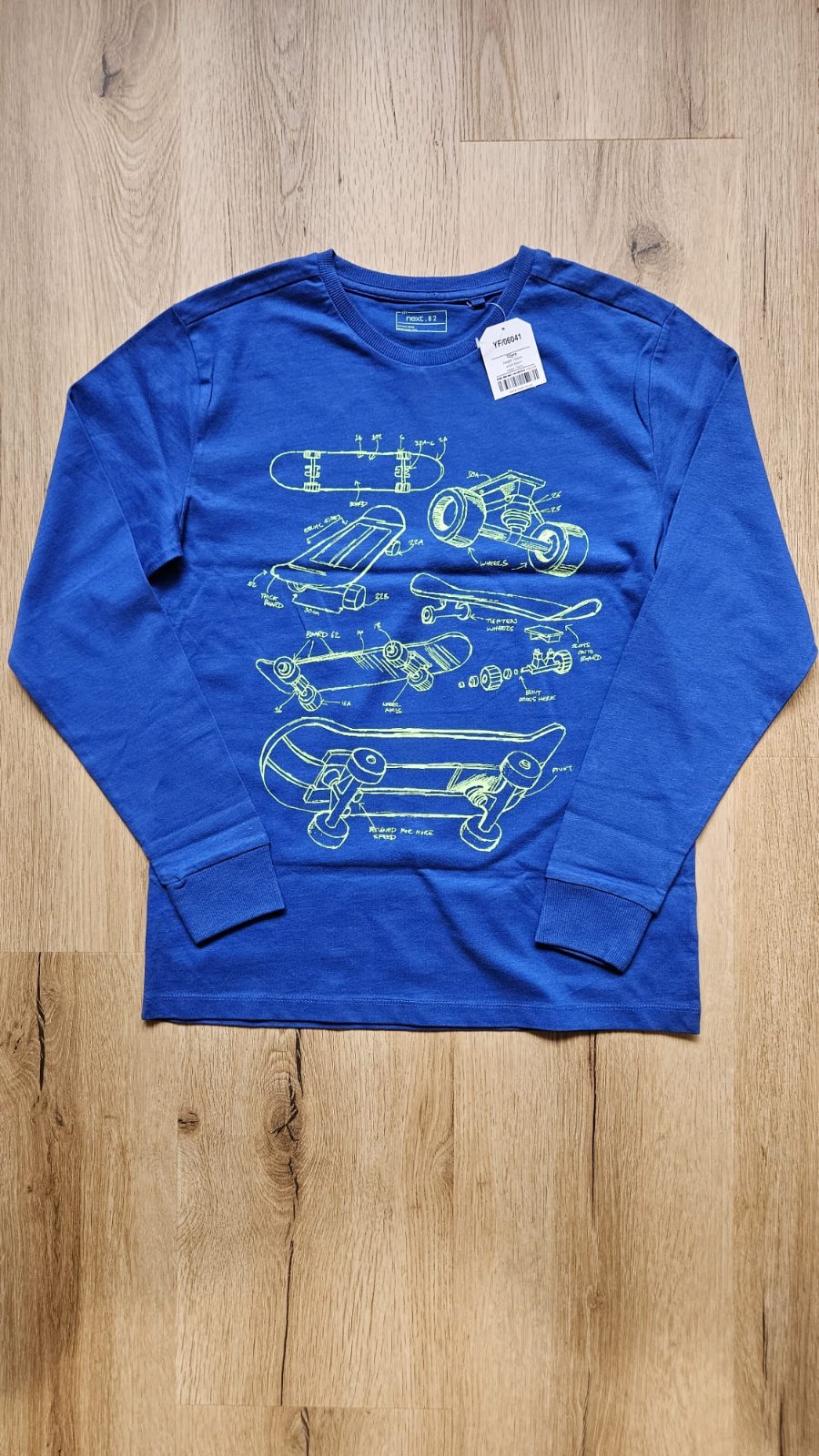 Nové chlapecké triko dl.ruk. Next 152 (12let) s obrázky skateboardu. Kvalitní 100% bavlna jak Next umí. Dá se nosit i jako slabá mikina. Nové s cedulkou, dovoz Anglie.