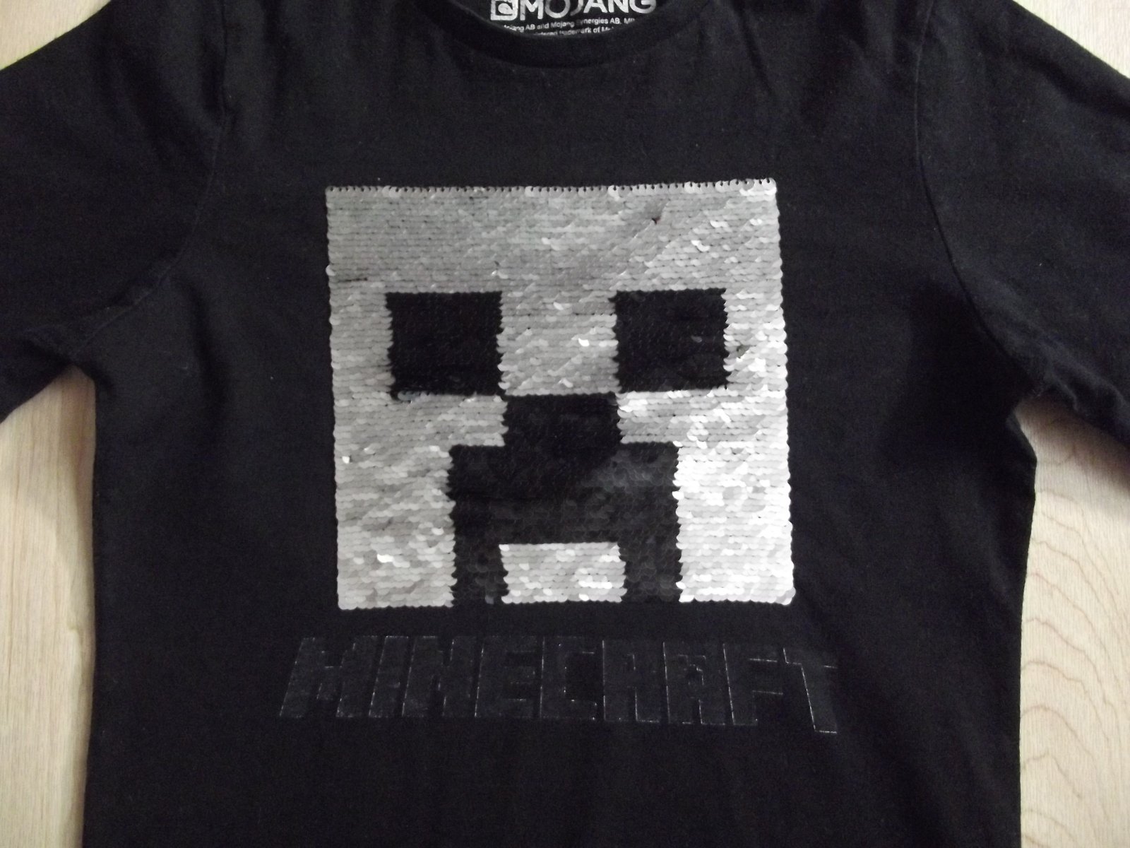 Triko má na rukávu lepidlo, nejde vyprat. Obrázek má měnící flitry. Proto dávám zdarma k objednávce z mých inzerátů. Pište si o něj.