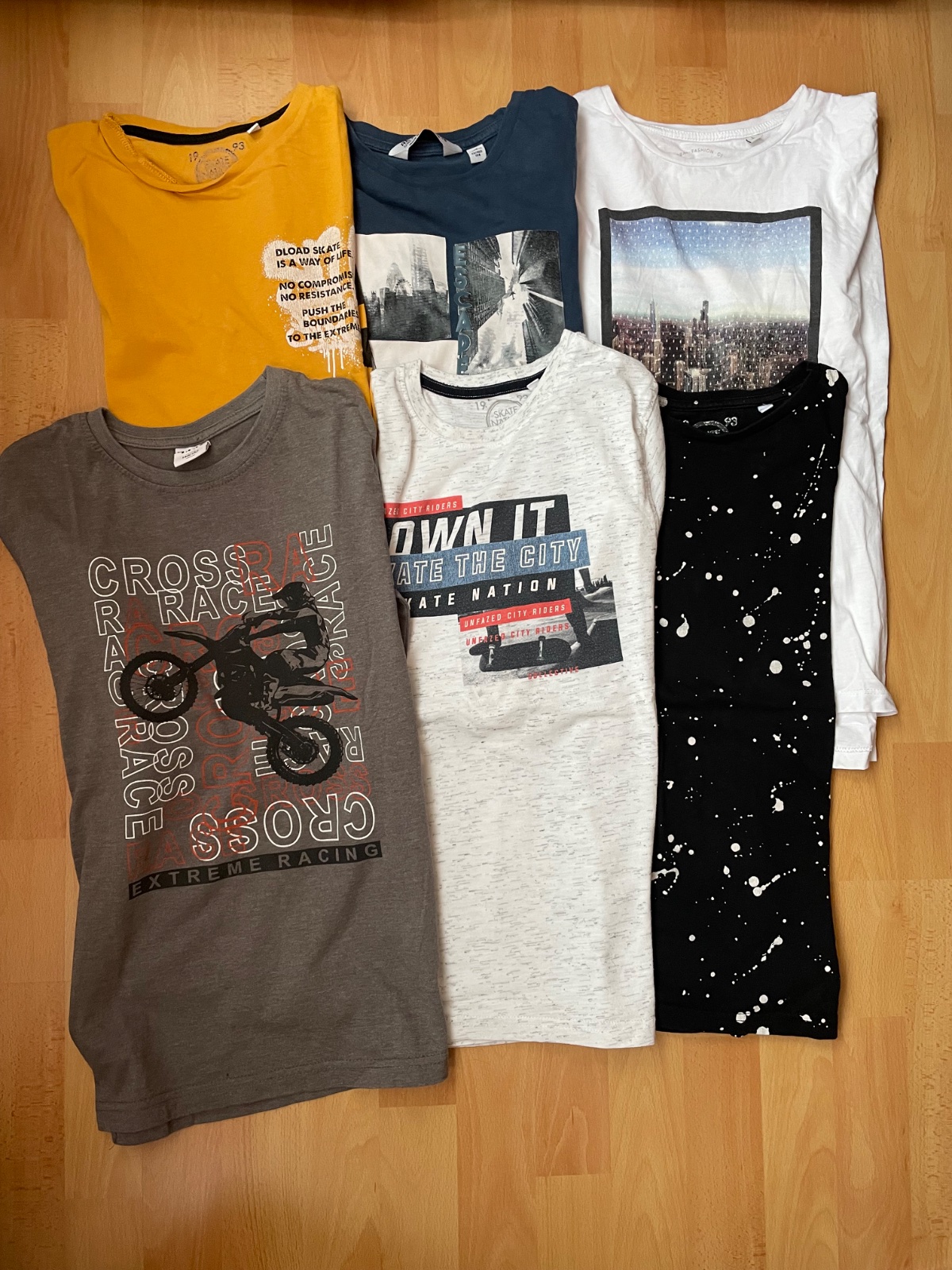 Nošená, v hezkém stavu, všechny mají dlouhý rukáv a odpovídají velikosti 146/152 (některá trička mají psanou větší velikost, ale odpovídají menší vel.). Značky C&A, Tom Tailor, Regatta, Kik. Cena za všechny. Osobní odběr na Praze 5 (Velká Ohrada) nebo odeslání přes balíkovnu, zásilkovnu.