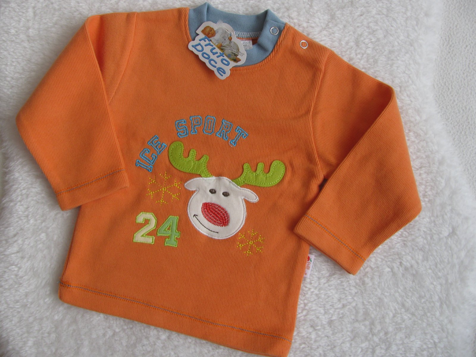 Kojenecké řádkované teplejší tričko, na ramínku na patentky, vyšité obrázky a nápis, našitý krásný sob, 50% bavlna, 50% polyester.