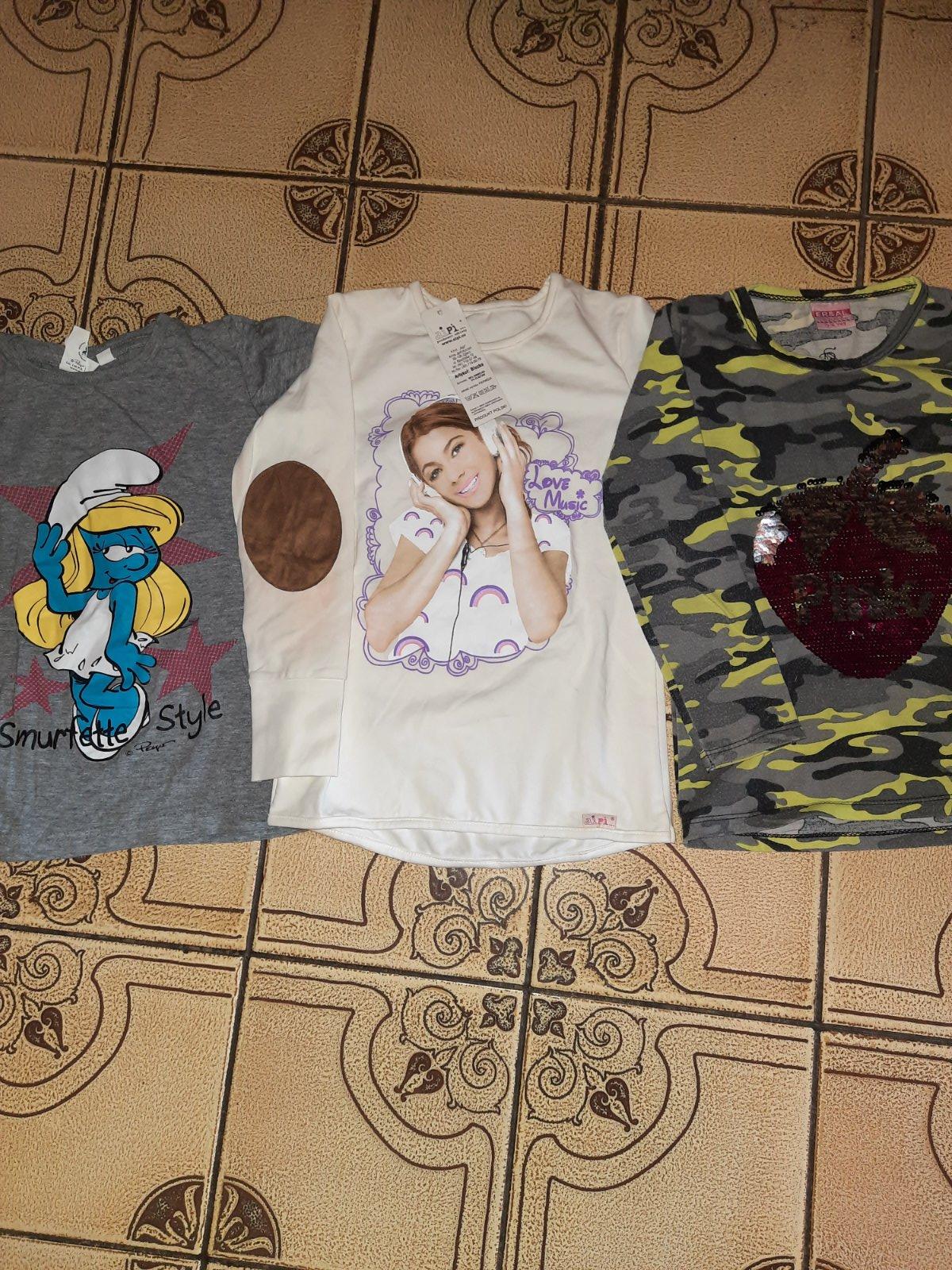 Prodám halenky v moc pěkném stavu, značky: Smerfy Smorfai, ER & AL, Aipi, velikost všech: 110, složení Šmoulinka: 85 % bavlna, 15 % polyester, jablíčkové: 100 % bavlna, se slečnou: 95 % bavlna, 5 % elastan, Šmoulinková halenka v moc pěkném stavu, jablíčková má prací chloupek, jinak pěkný stav, se slečnou je nová halenka. Cena za všechny halenky je: 300 Kč + poštovné. Krabice č. 41.