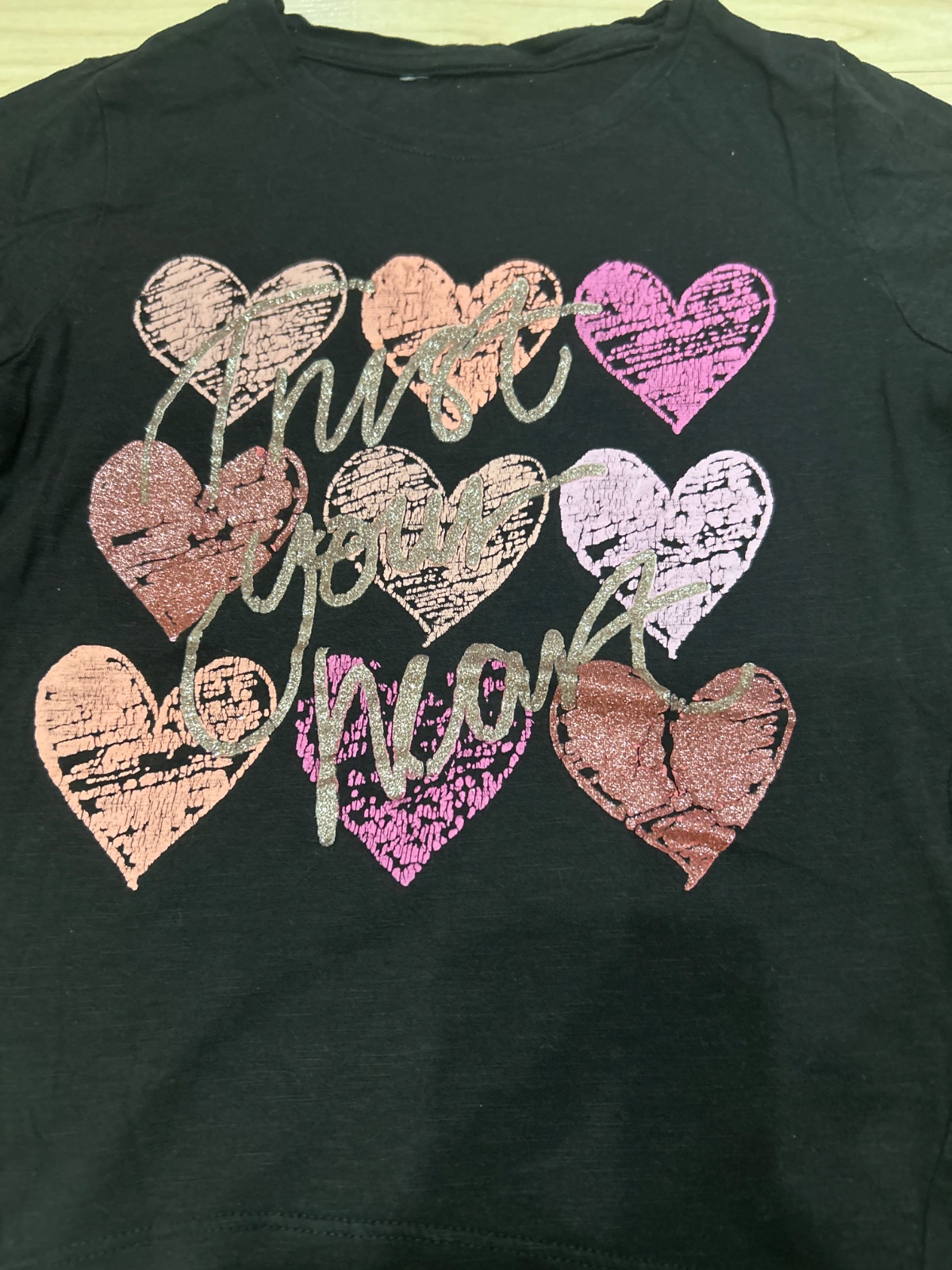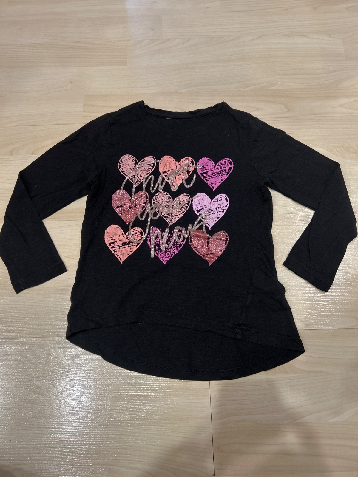 Nabízím 2x černé tričko. Vel. 122/128. Tričko s mašlí délka rukávu od krku 43cm, délka 45cm. Tričko s kamínky délka rukávu od krku 48cm, délka 44cm.