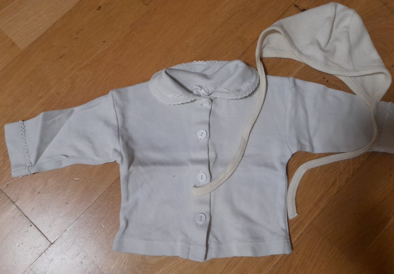 Bílý kabátek a béžová čepička ve vel. 56