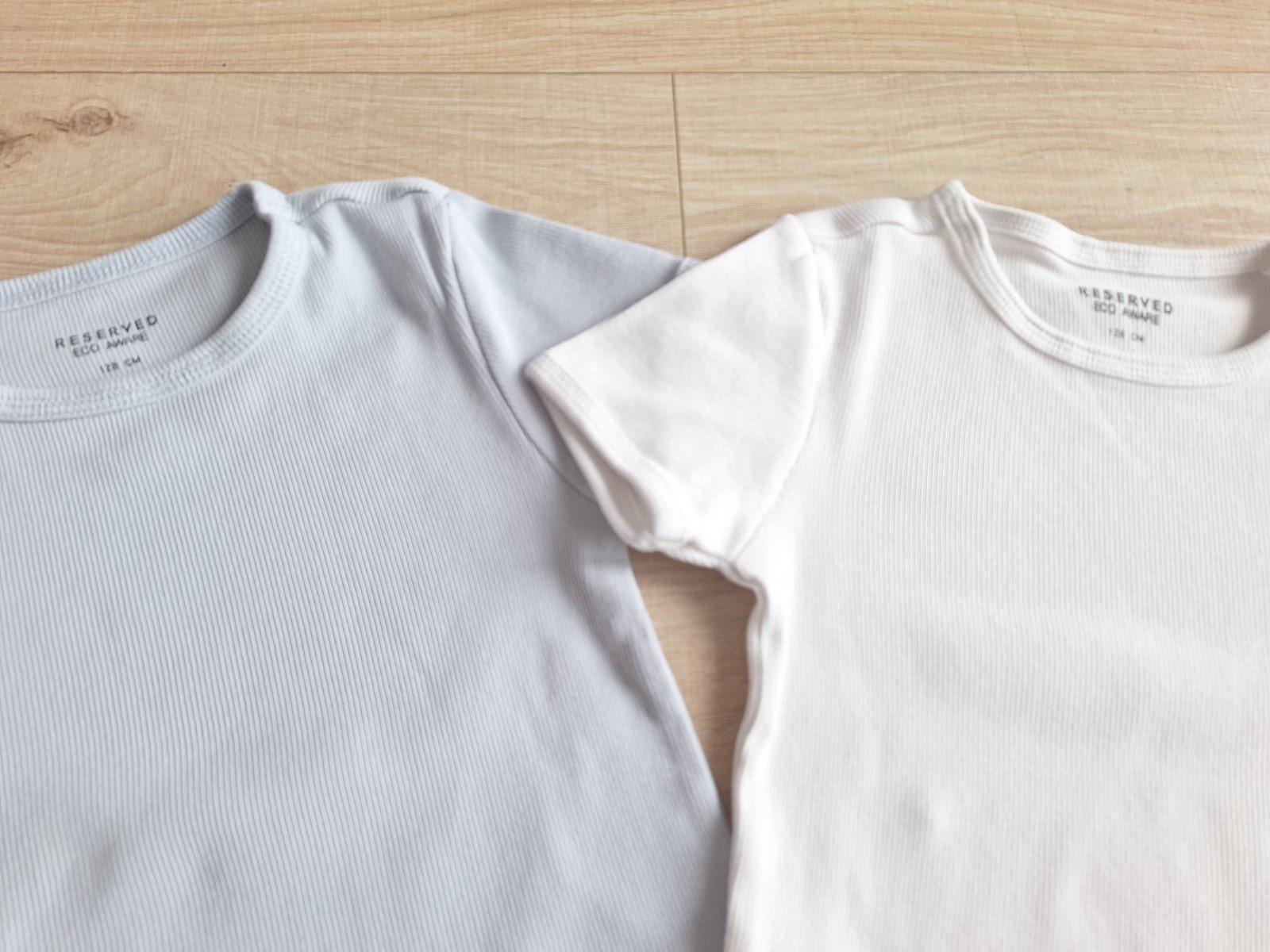 2x tričko Reserved velikost128 . Krasna bavlněná trička ,vroubkatý materiál. Světle modré a bílé. Cena za obě 80-Kč