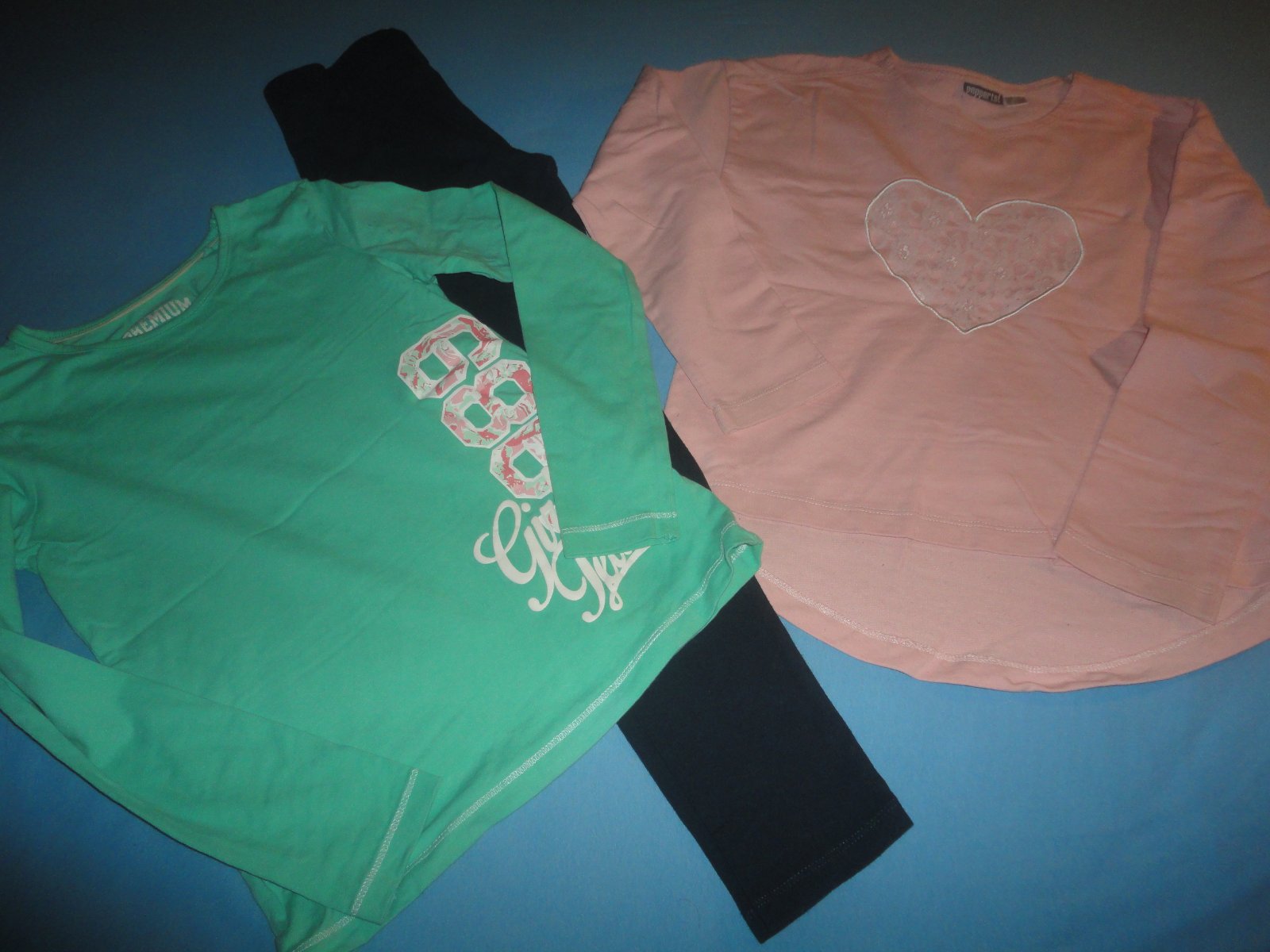 Krásně zelené triko dl. rukáv pro štíhlou dívku, bezchybný potisk vpředu, minimálně oblečené, materiál 95% bavlna, 5% elastan, d. 52cm, š. 35,5cm, rukáv od krku 58,5cm, od průramku 40,5cm