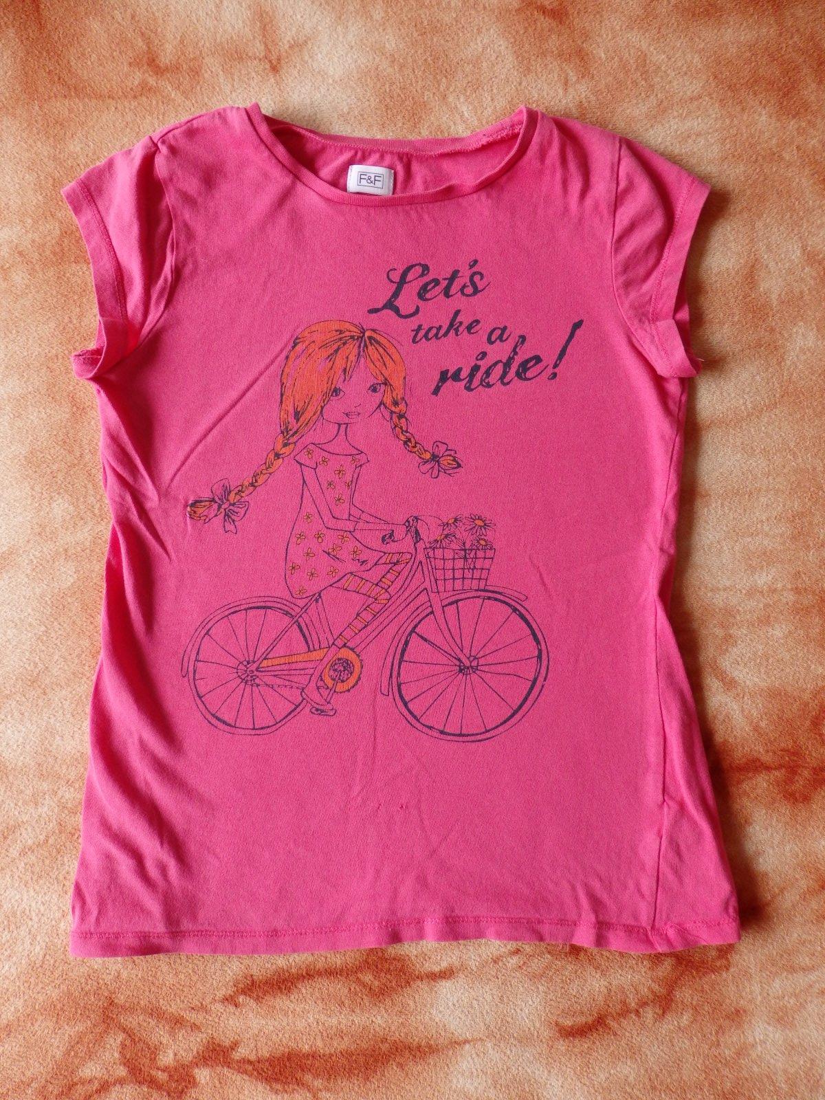 Hezké tričko s holčičkou na kole, má dvě mini dírky na zašití, jinak v dobrém stavu.