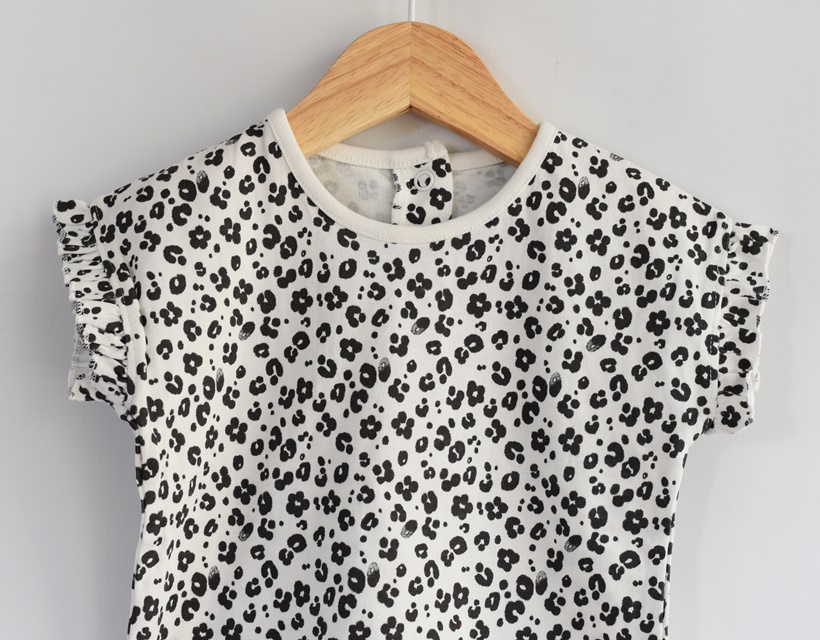 Bílo černé dívčí tričko.