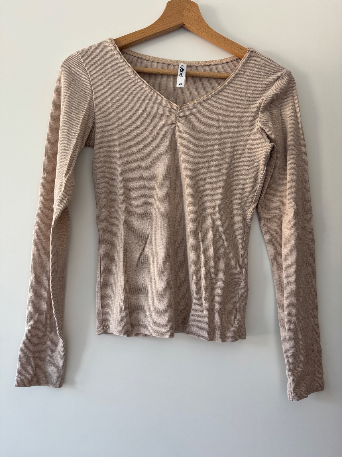 Béžová barva. Nové, nenošené. Délka: 56,5 cm, délka rukávu od krku: 66 cm, šířka v podpaží: 2x33 - 44 cm. Materiál: 56% polyester, 33% viskóza, 1% elastan.