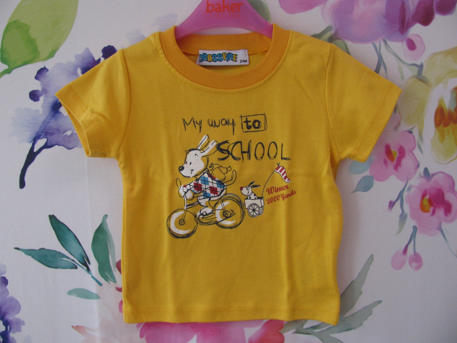 Krásné žluté bavlněné tričko se zajíčkem