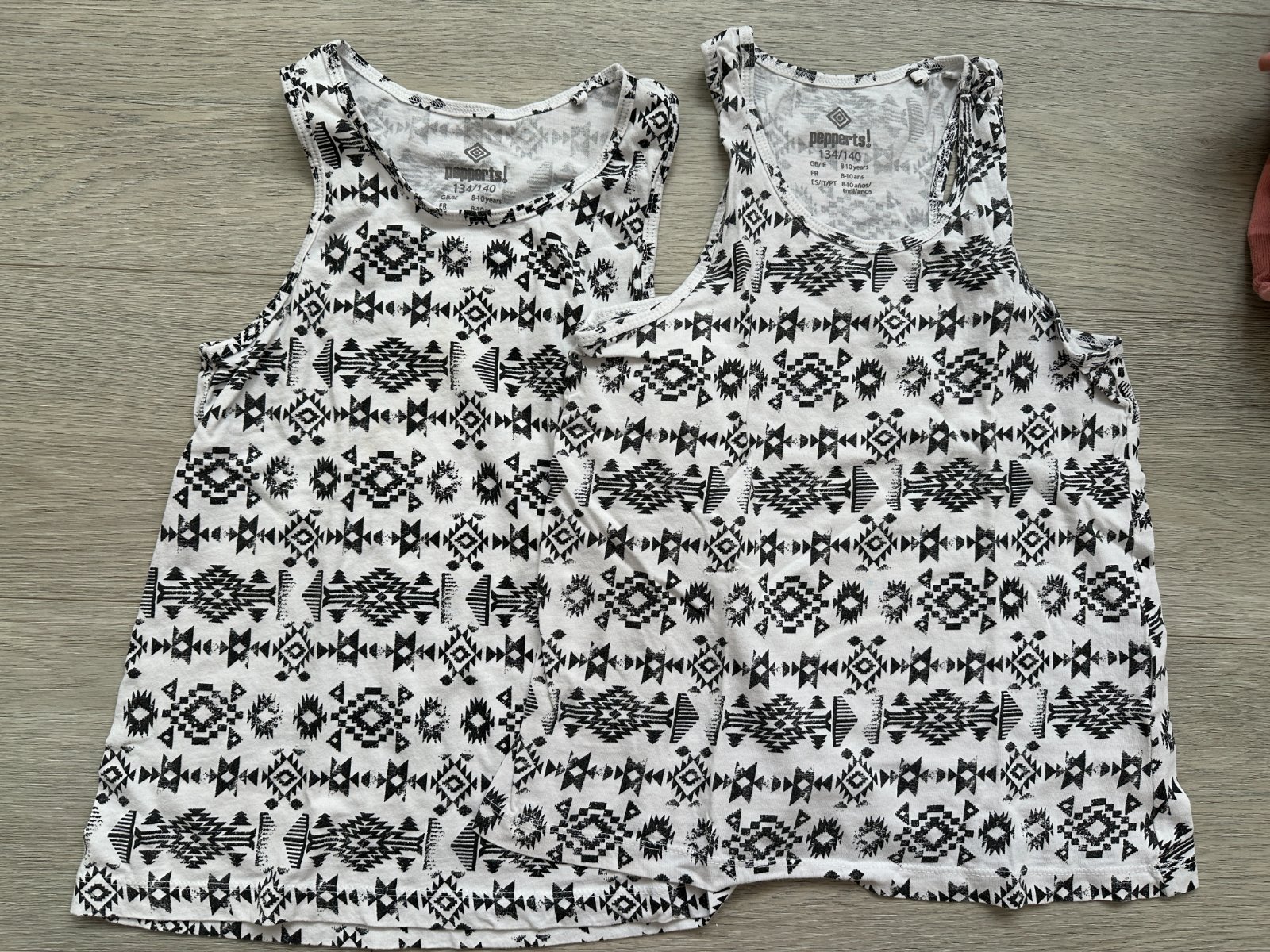 Dívčí tílko bílo-černé, vel. 134/140, 2 ks