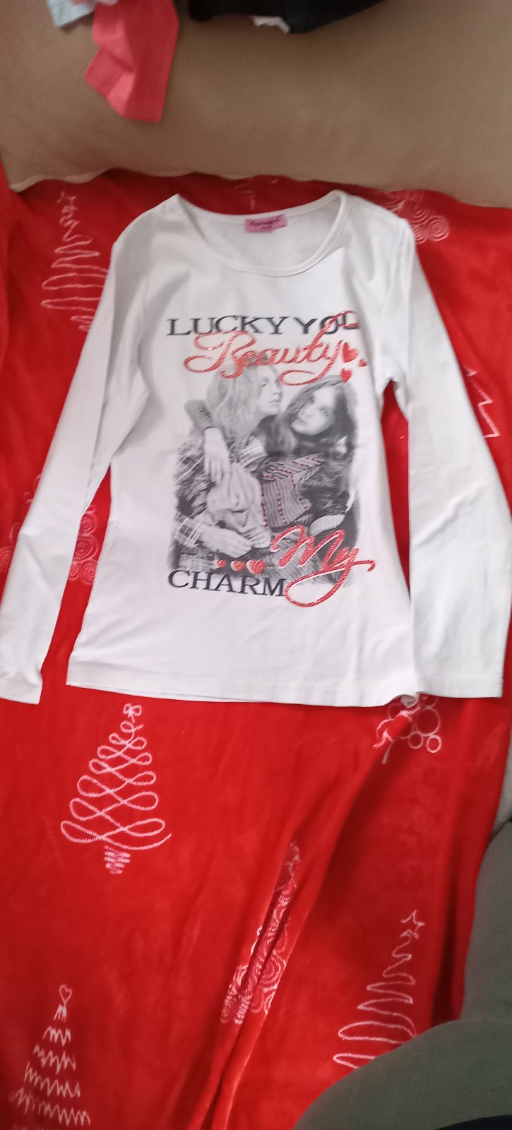 Tenčí triko, na předním díle nalepené třpytky a jeden flicek. Velikost odhaduji dle dcery rada premerim.