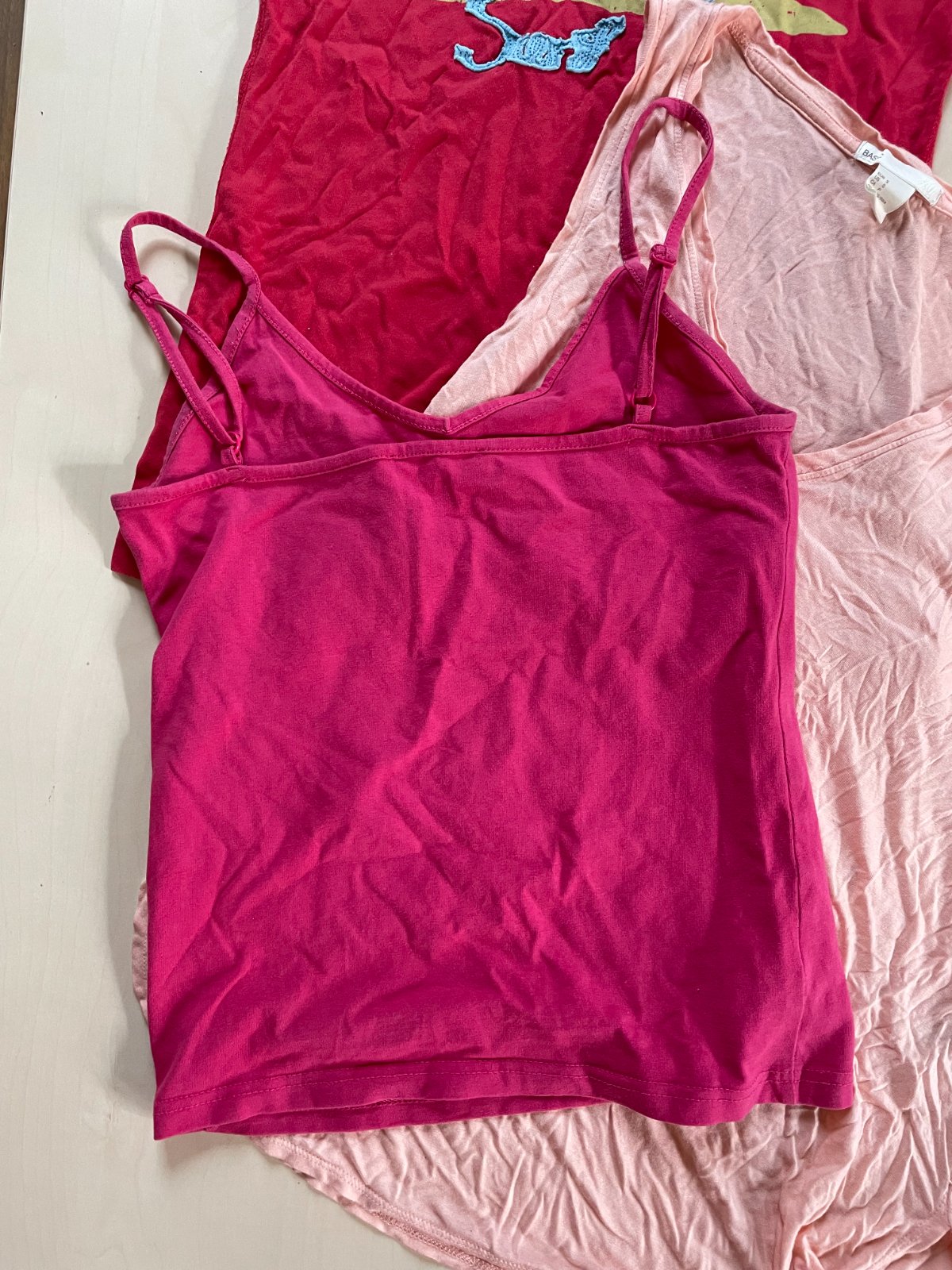 2. Růžové tílko, vel XS, Basic. Délka 50, prsa 36-48